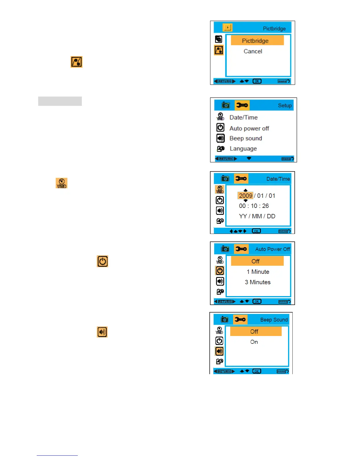the Up/Down buttons to select Date/Time , Auto power off ,