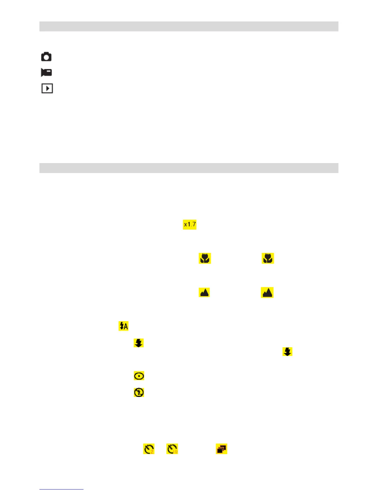 has been "forced on" (manual flash). If the flash is not ready, an LED will illuminate and the icon will flash