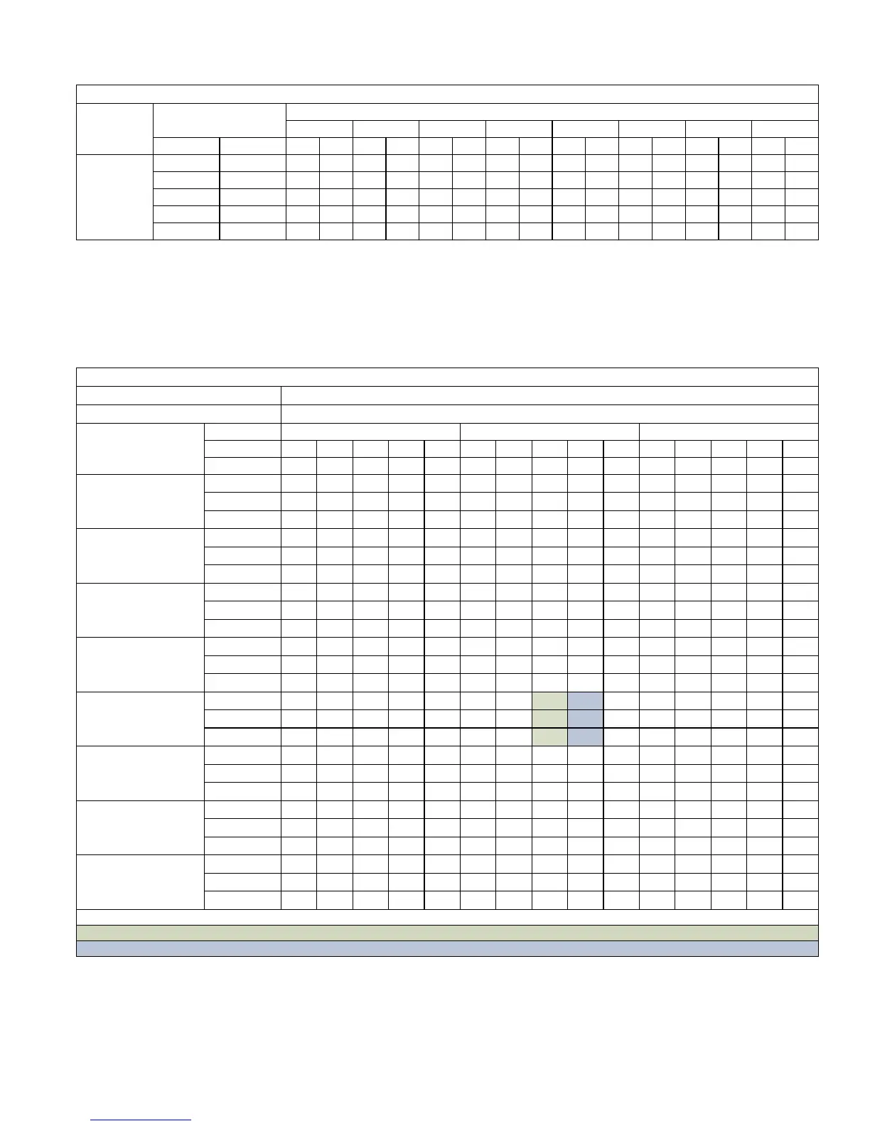 Blue shaded cells are AHRI conditions.