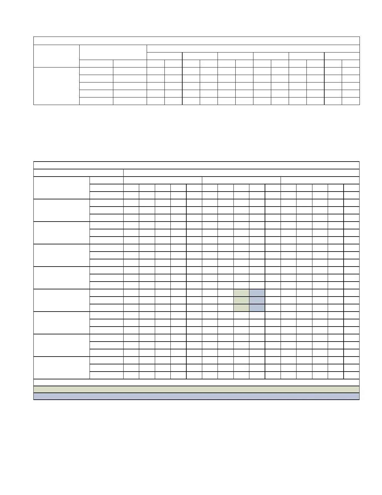Blue shaded cells are AHRI conditions.