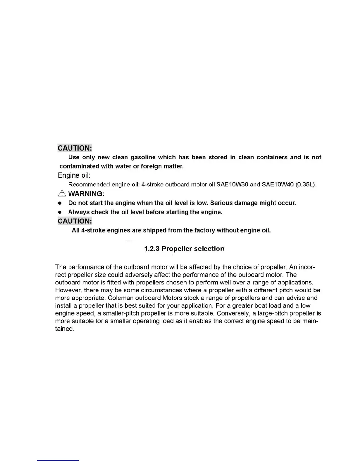 Coleman F2.6BM - Propeller Selection