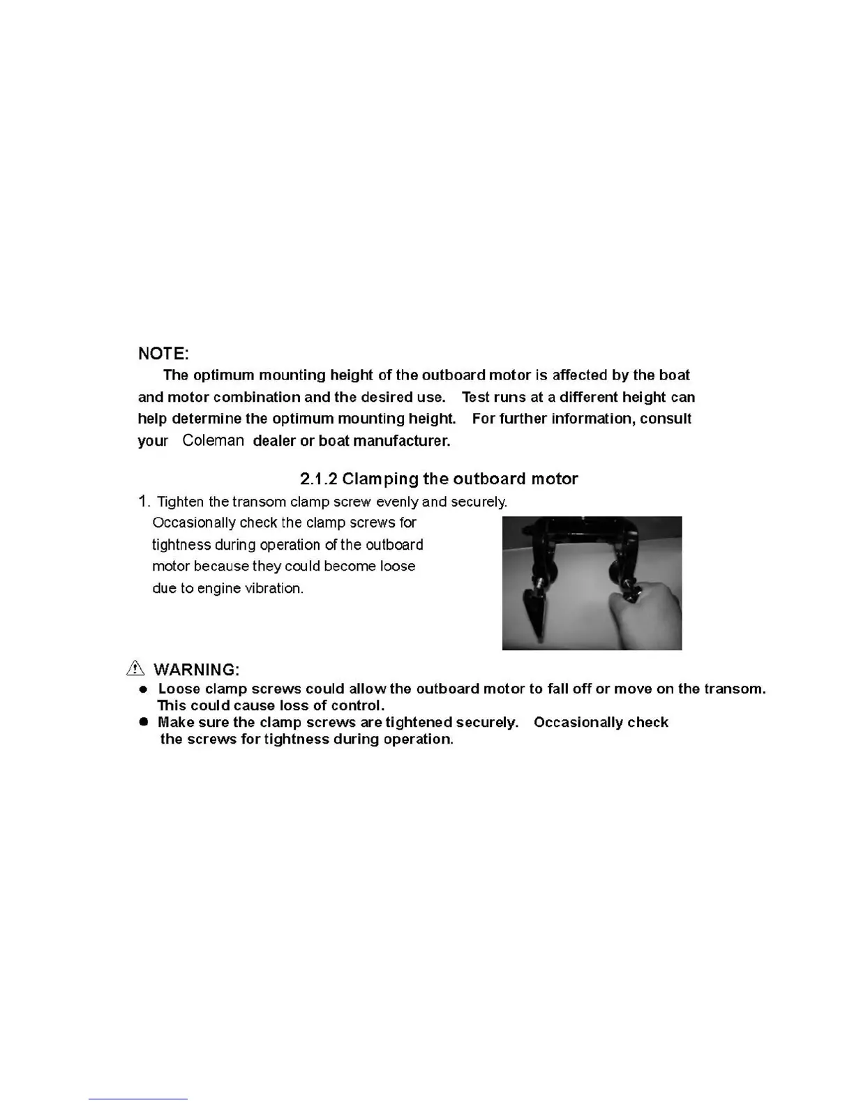 Coleman F2.6BM - Clamping the Outboard Motor