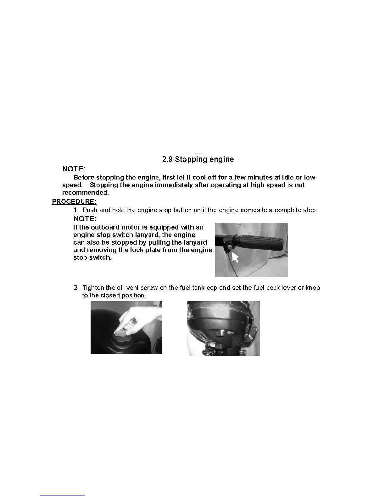 Coleman F2.6BM - Stopping Engine