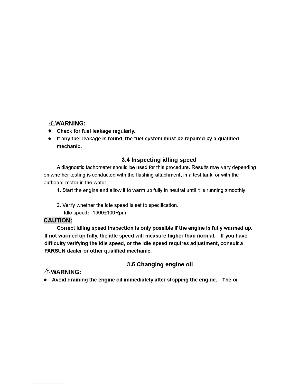 Coleman F2.6BM - Inspecting Idling Speed; Changing Engine Oil