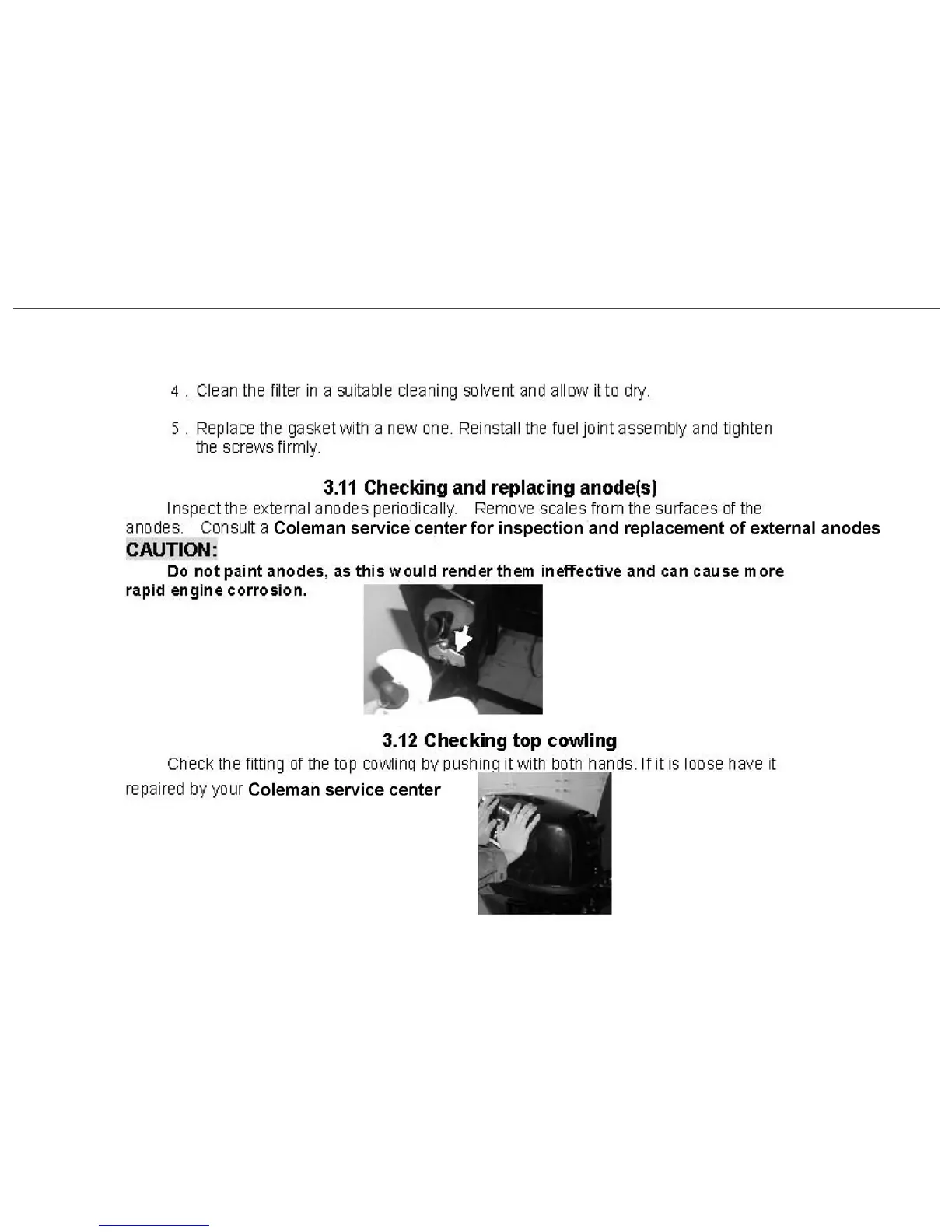 Coleman F2.6BM - Checking and Replacing Anode; Checking Top Cowling
