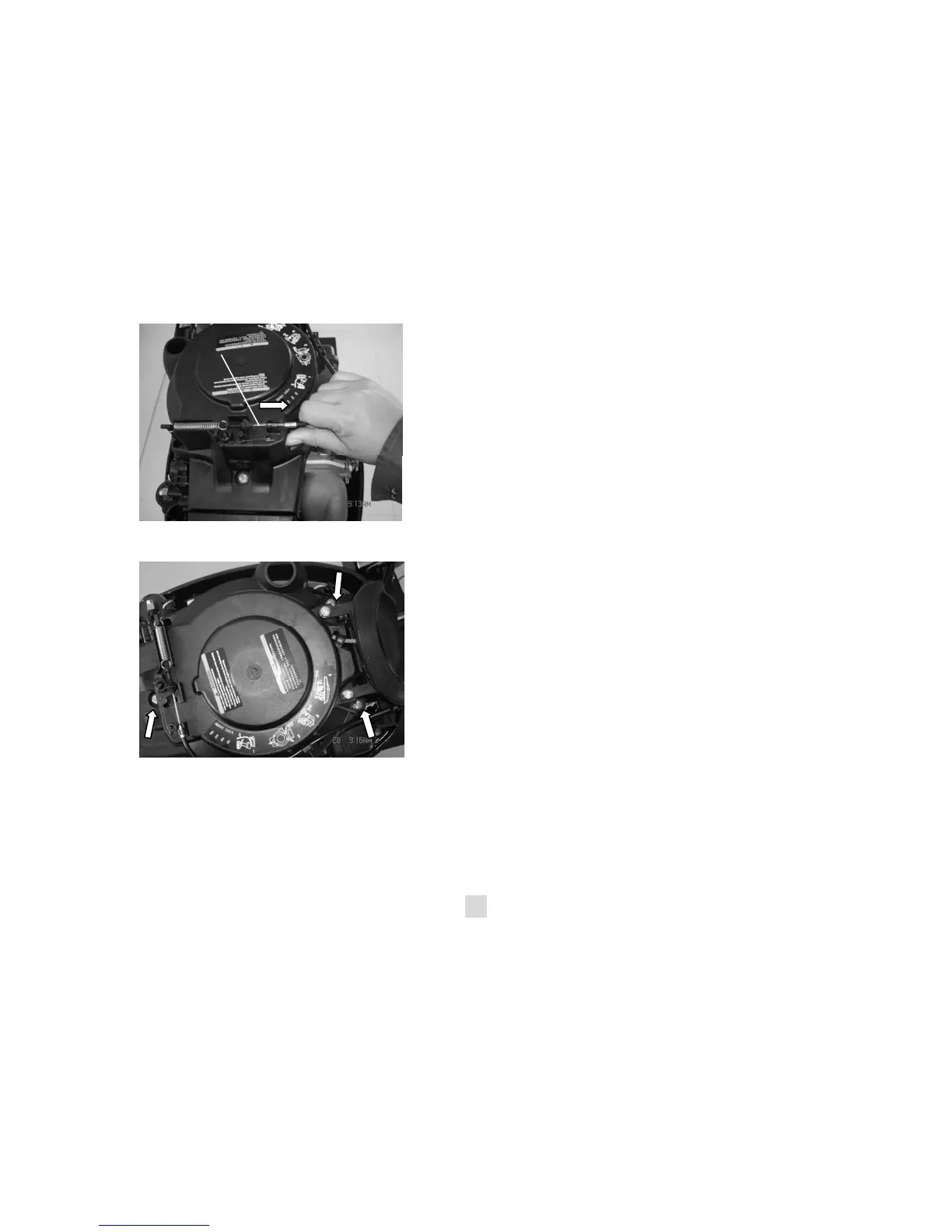 2. Remove the start-in-gear protection cable and the choke cable.
