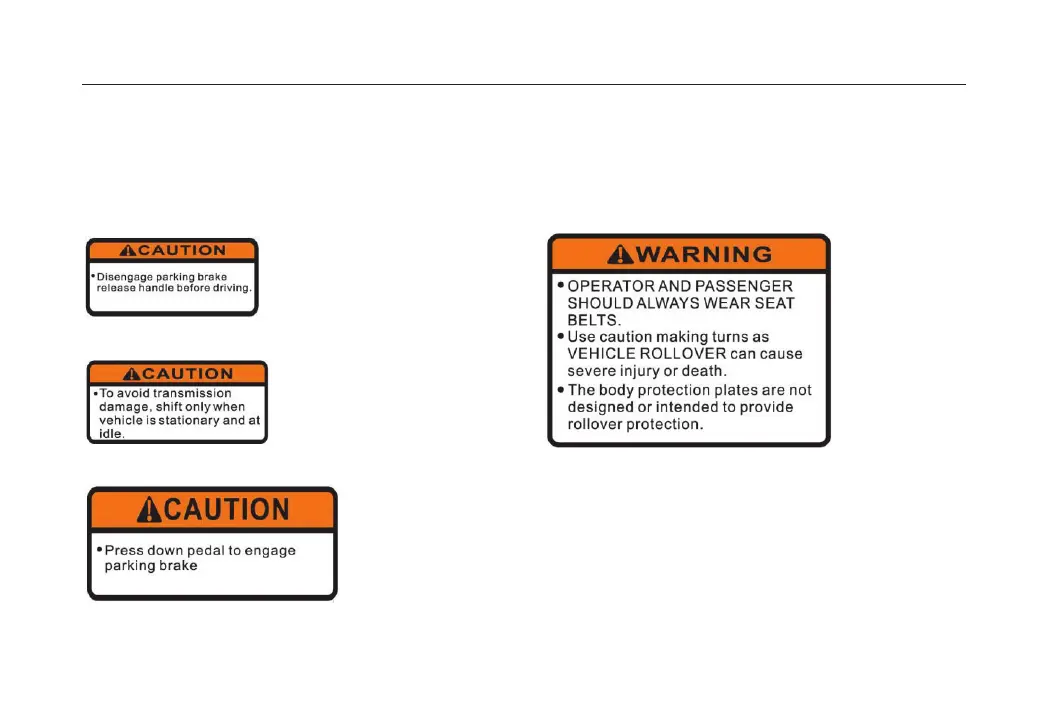 Read and understand all of the labels on your vehicle. They contain important information for