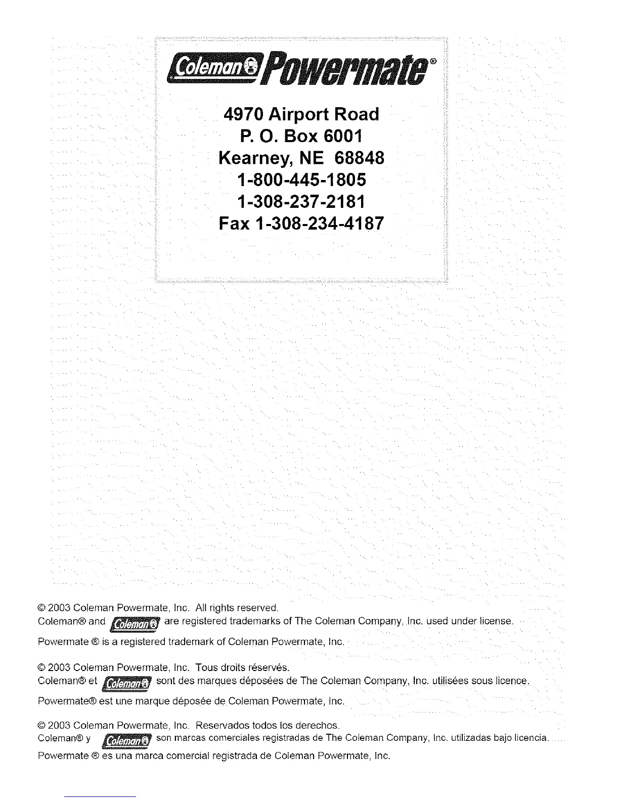 @2003 Coleman Powermate. Inc. AI rights reserved.