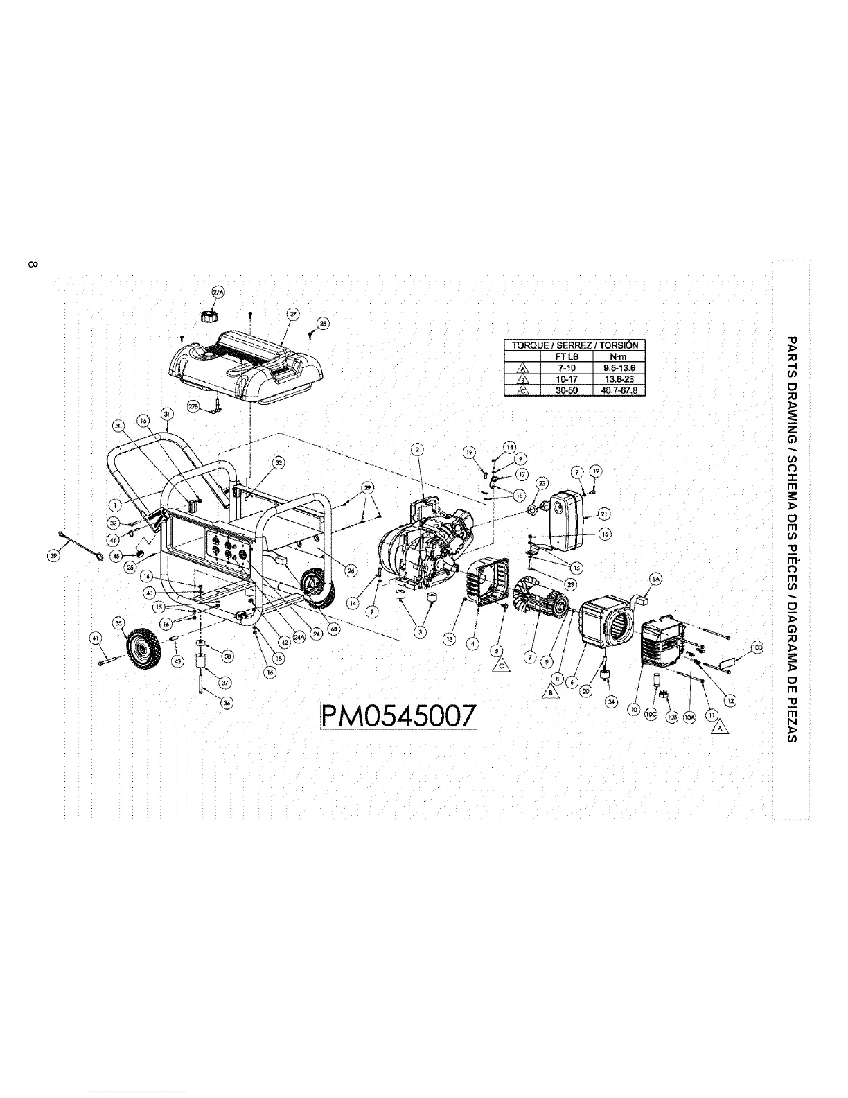 Coleman Powermate PM0545007 Insert - Parts Drawing; Torque Specifications