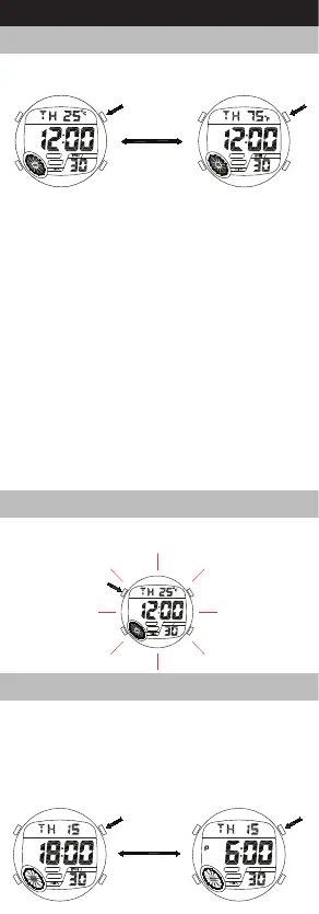 • In any mode, press “A” to illuminate the display. The