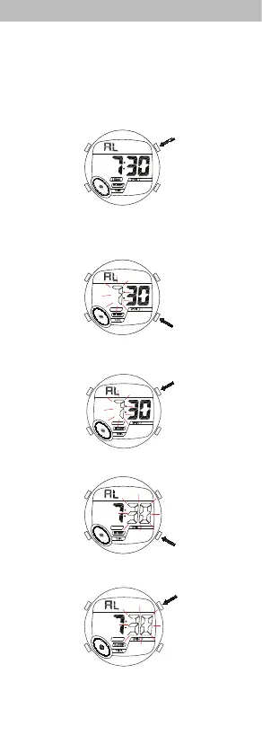 • In alarm mode, press “C” until the hour flashes. Flashing