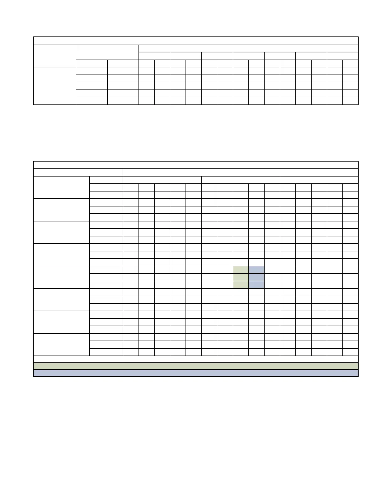 Blue shaded cells are AHRI conditions.