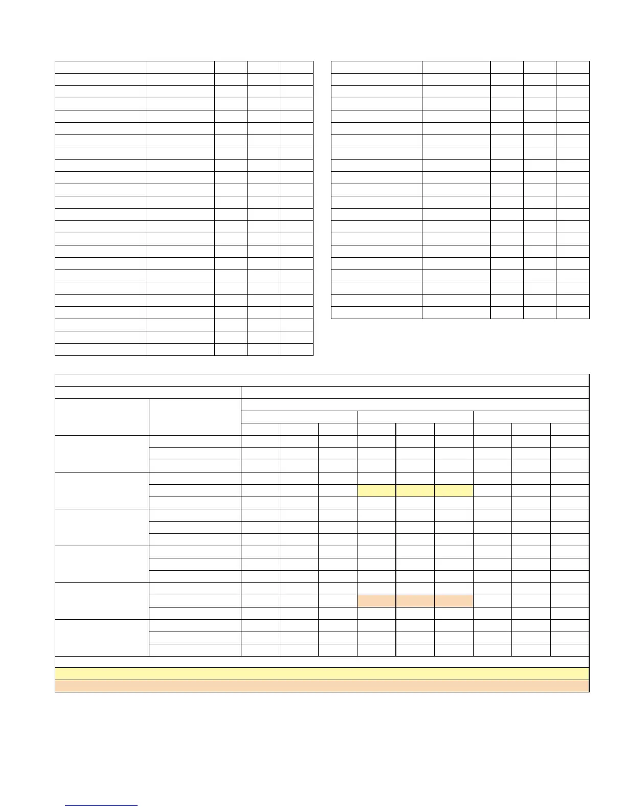 Orange shaded cells are AHRI Low Heating conditions.