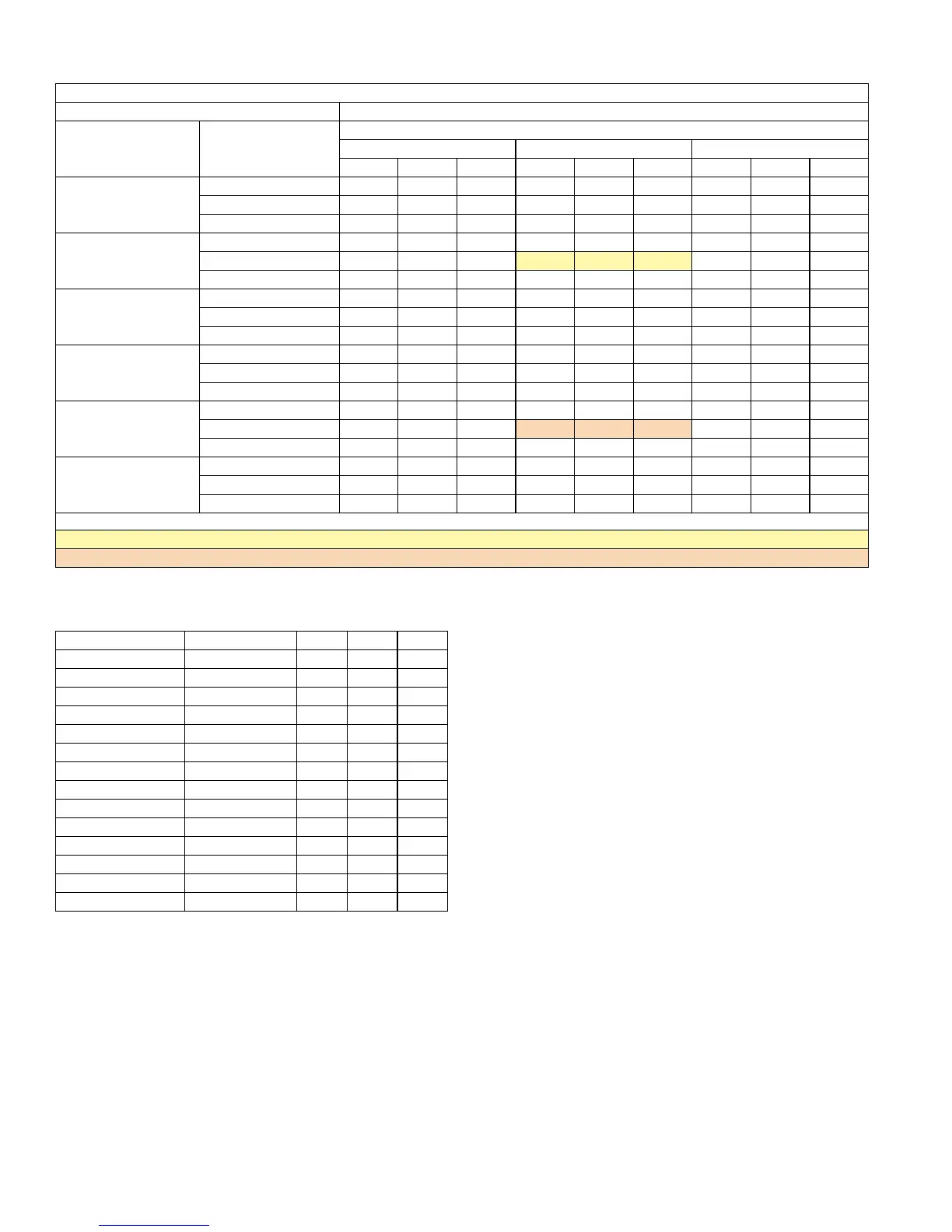 Yellow shaded cells are AHRI High Heating conditions.