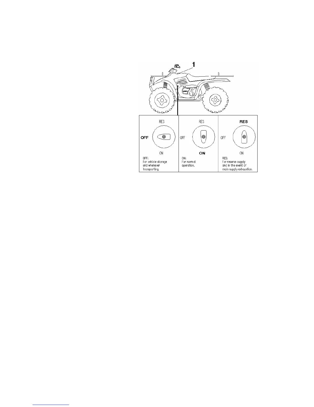 The fuel valve is located on the left side of the front fender and