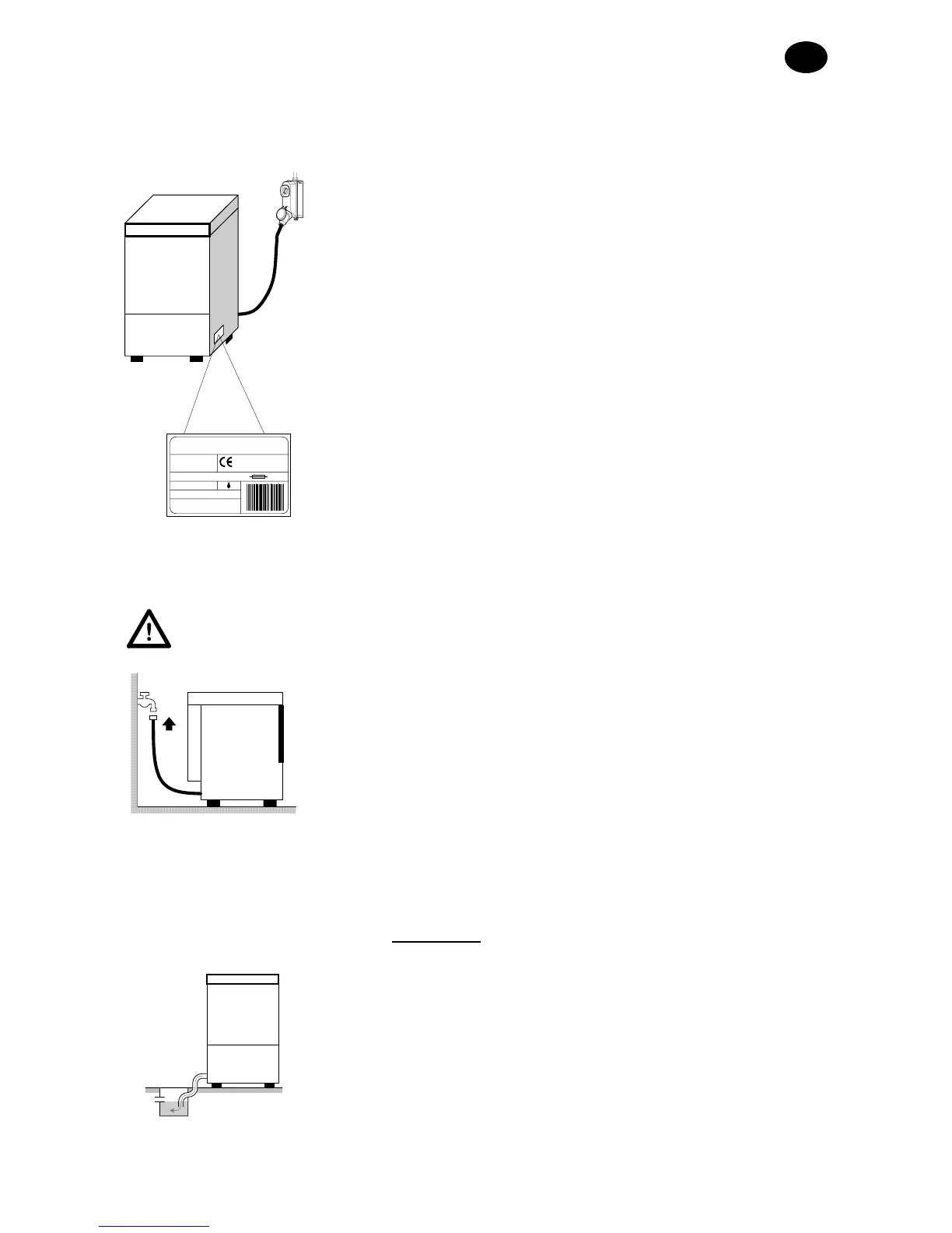 • Afløbssystemet skal bestå af et frit afløb med vandlås i mål, der