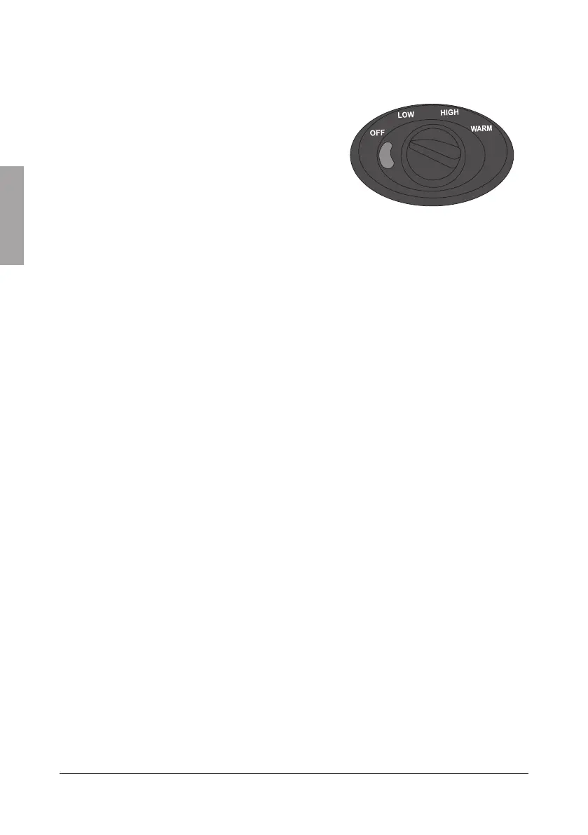 tillagas med reglaget i läge LOW eller HIGH och kan sedan slås över i läge WARM