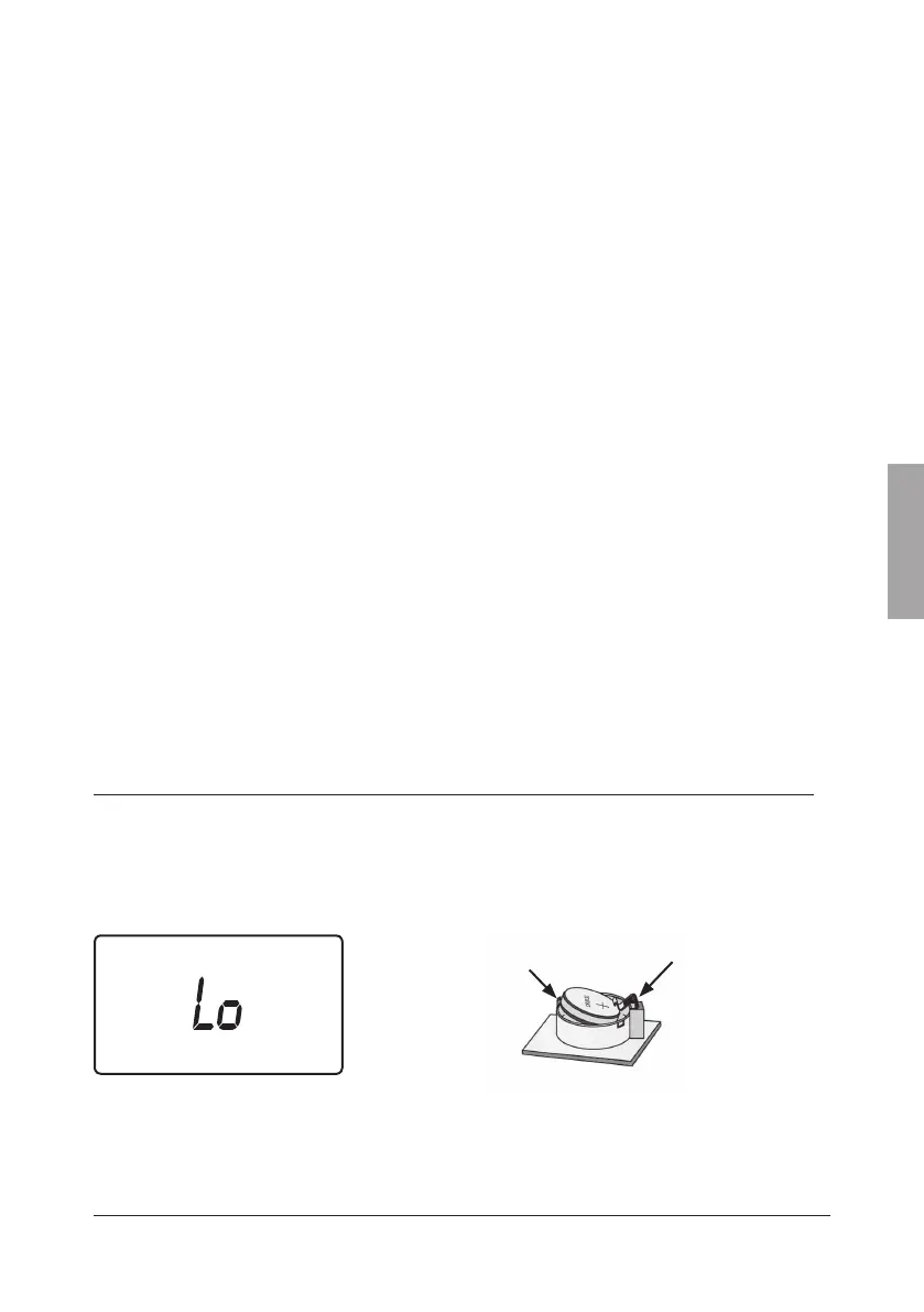 Näytöllä lukee ”Lo”, kun on aika vaihtaa paristo.