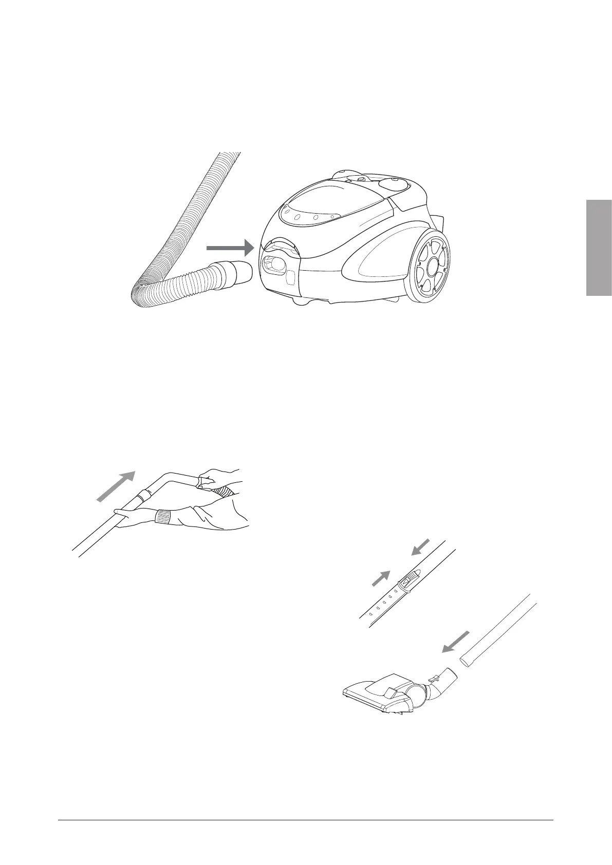 1. Sätta fast och ta bort dammsugarslangen