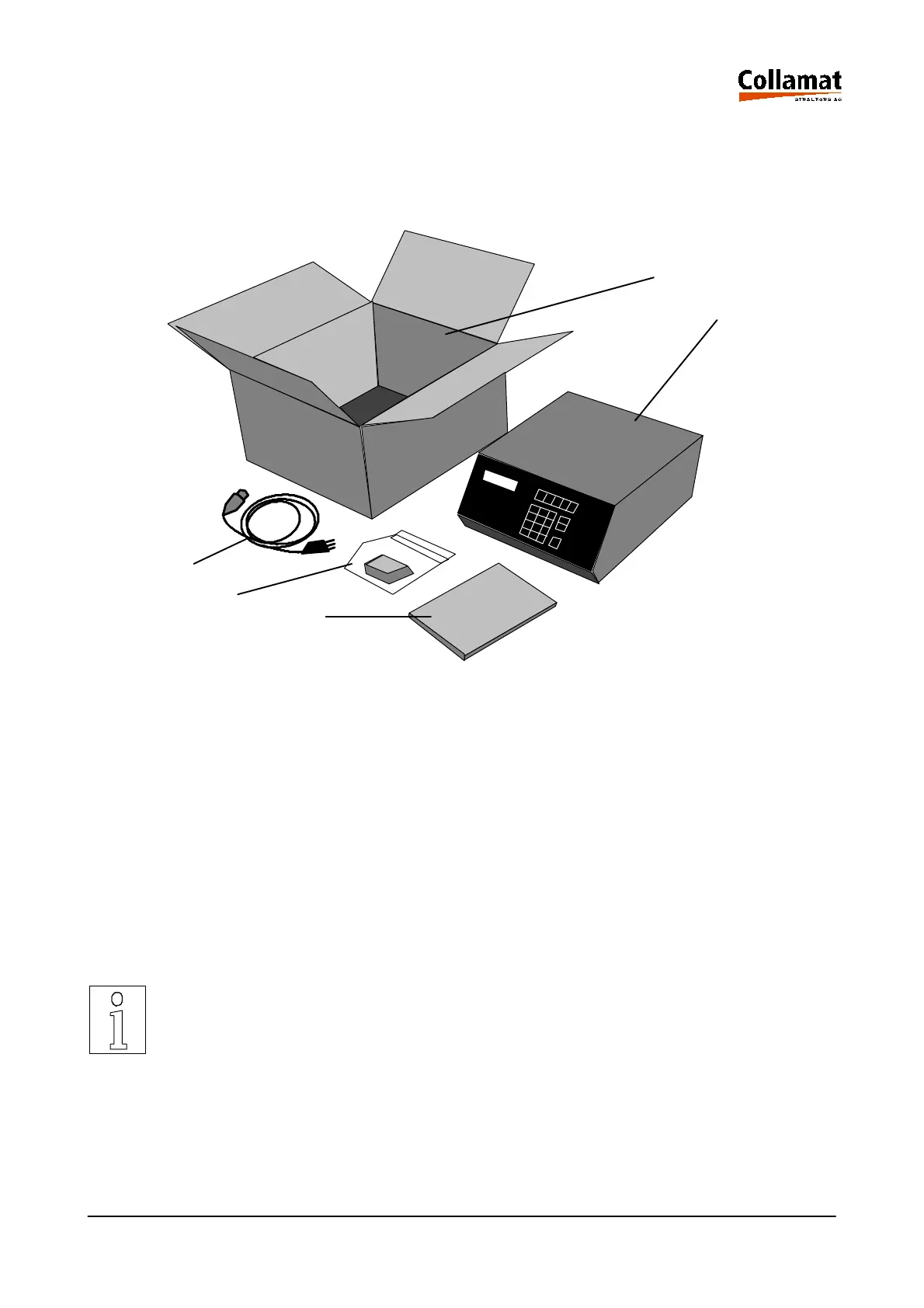 For unpacking place the packing box 1 on a stable table or platform and open it carefully. Be careful
