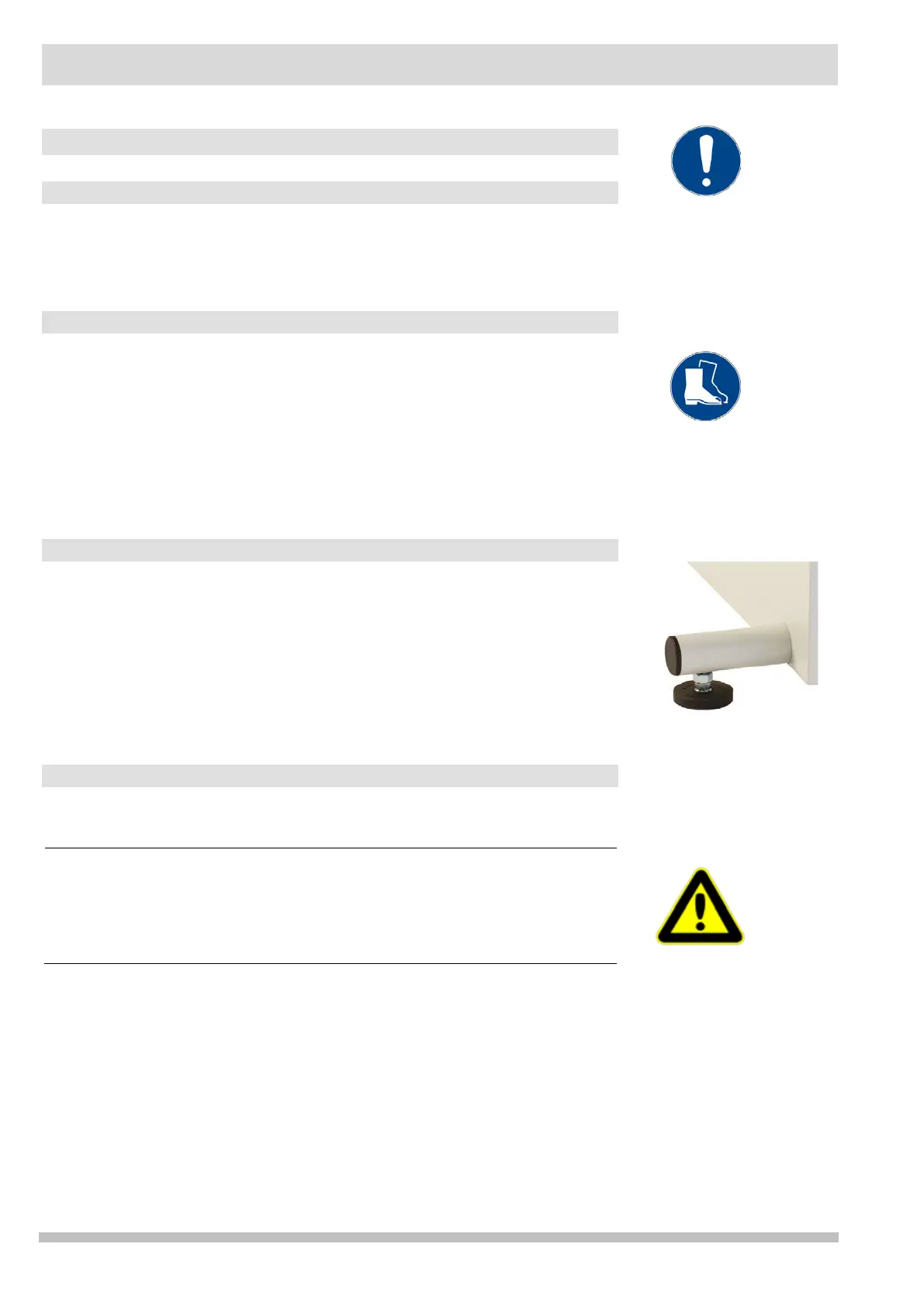 Adjust any unevenness in the floor with the height-adjustable legs (11).