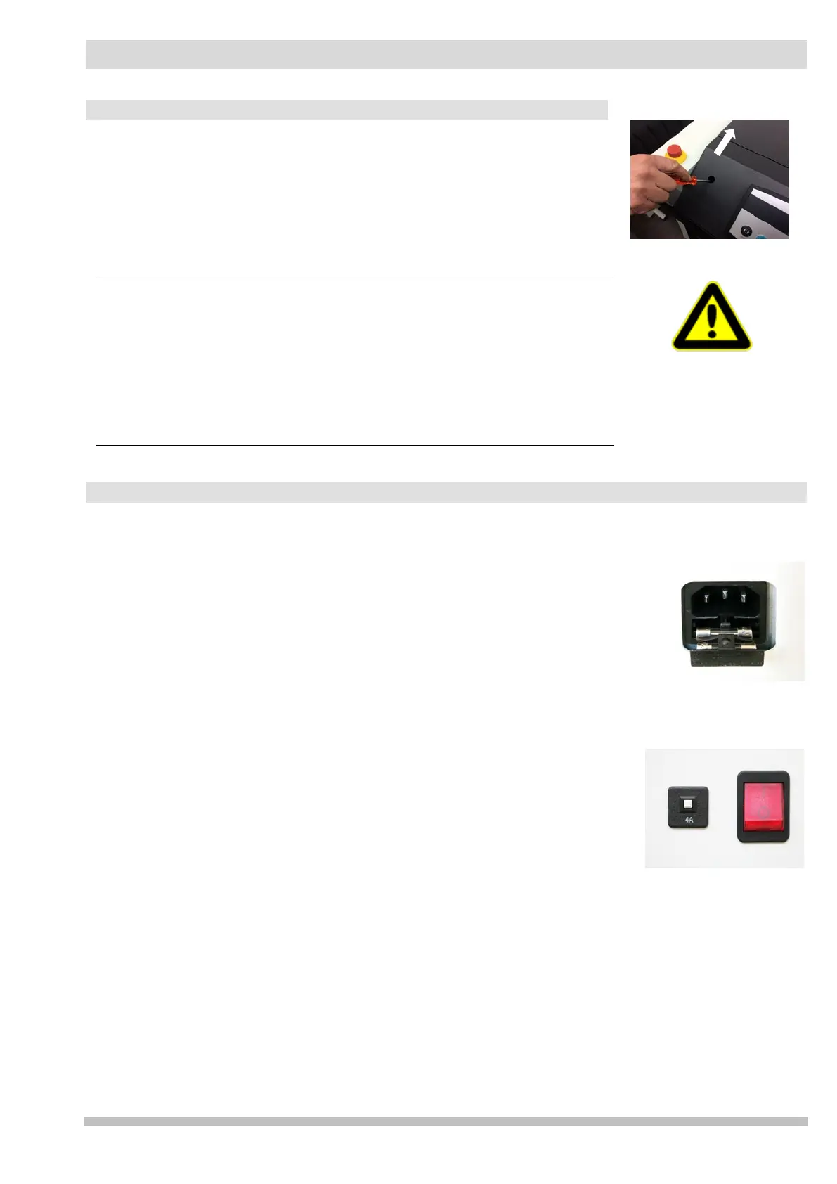 The device fuse is located in the mains connection on the back of the machine. Only use 5x20mm,