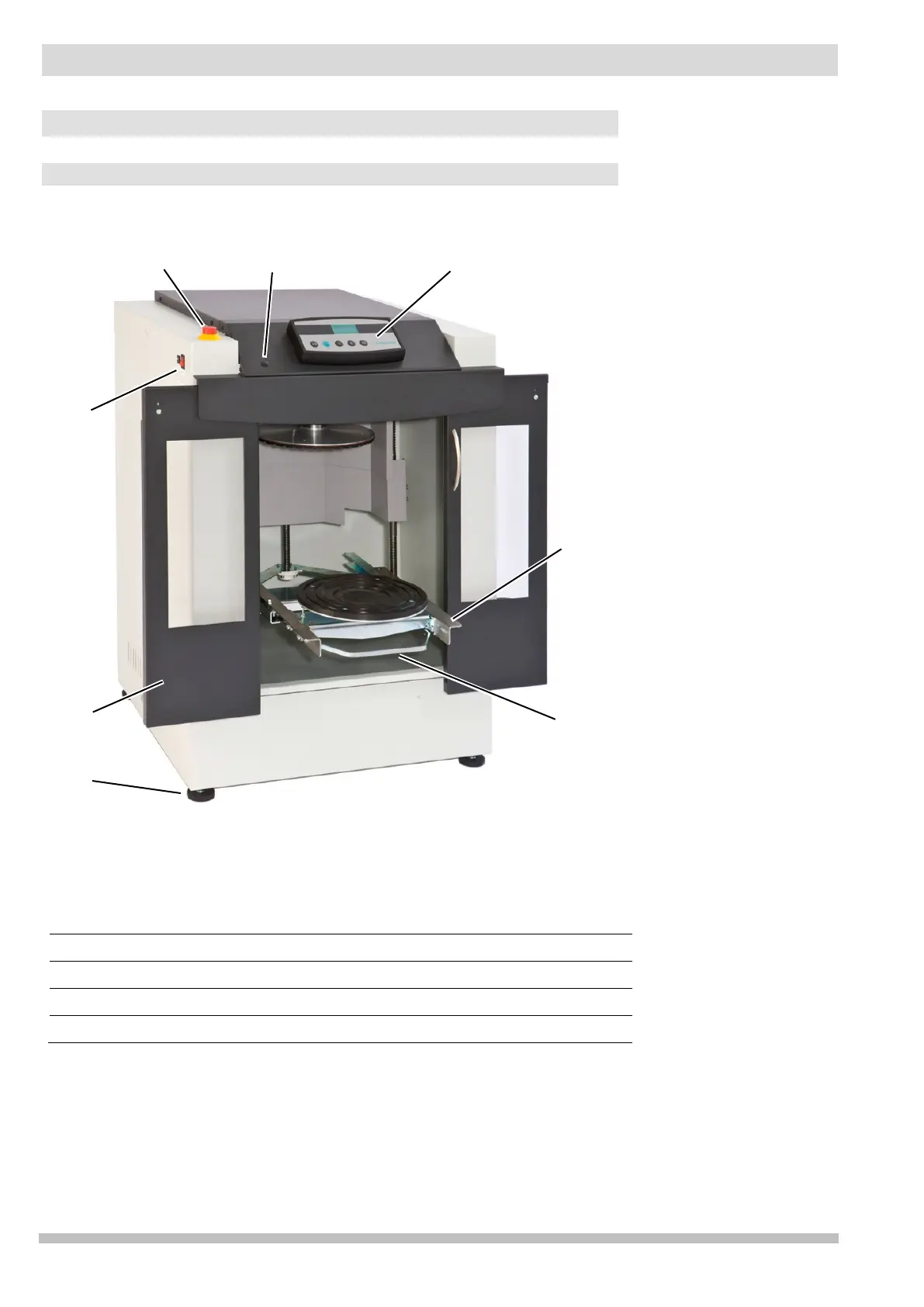 1. Machine legs 5. Manual door release