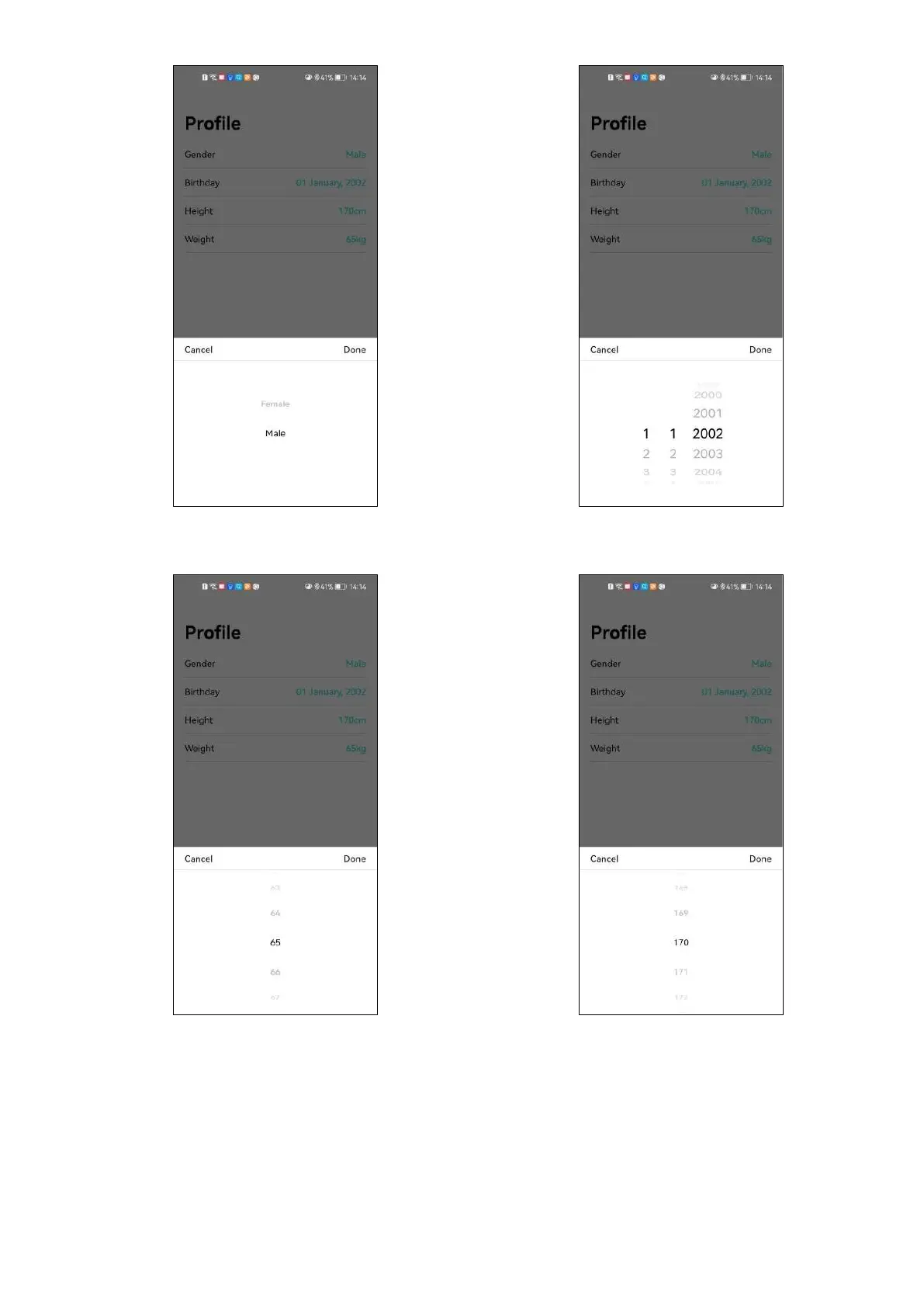 COLMI P28 Plus - Da Fit Profile Data Entry; Setting Gender and Birthdate; Setting Height and Weight
