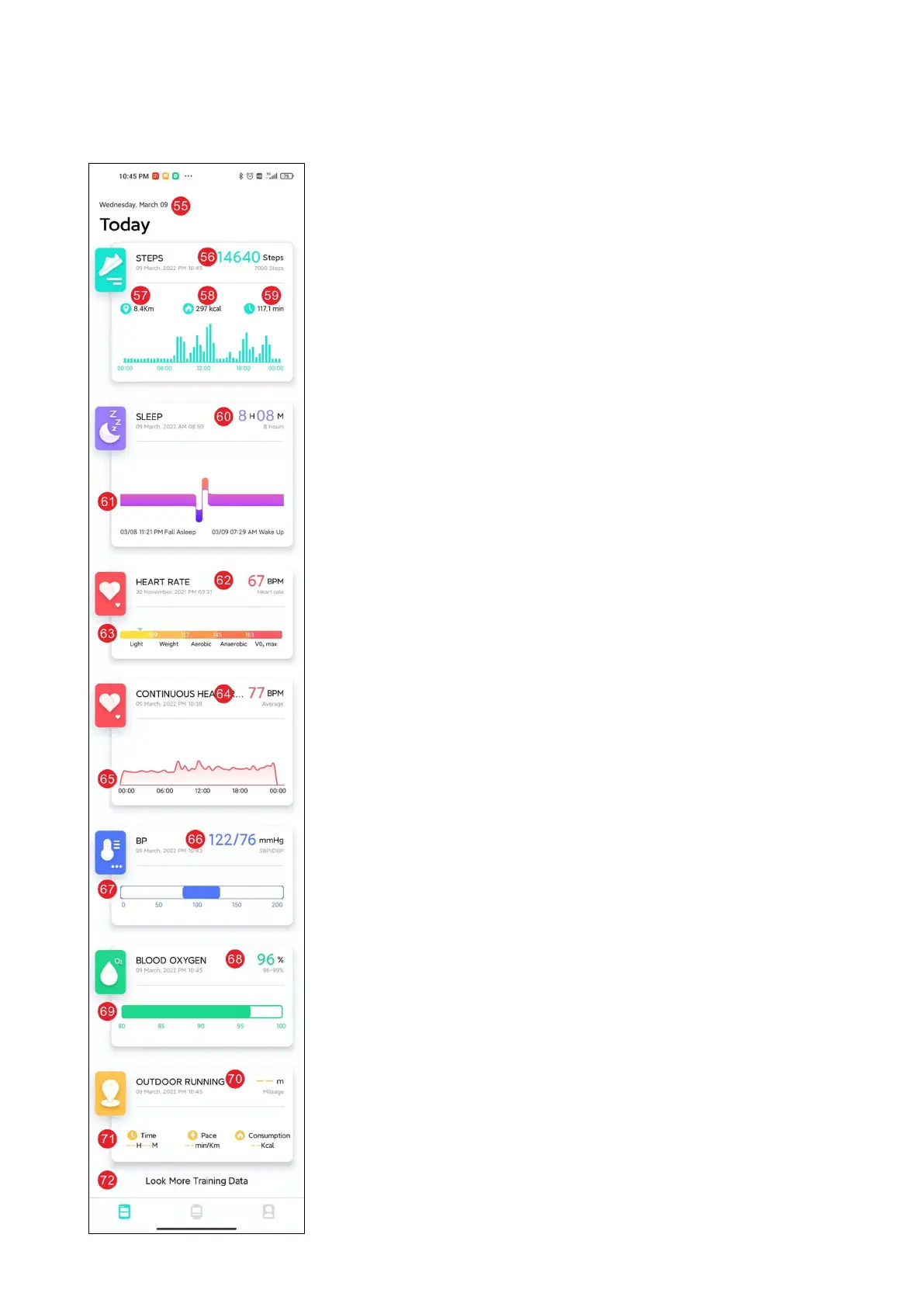 61: Legenda de dados do sono do dia anterior