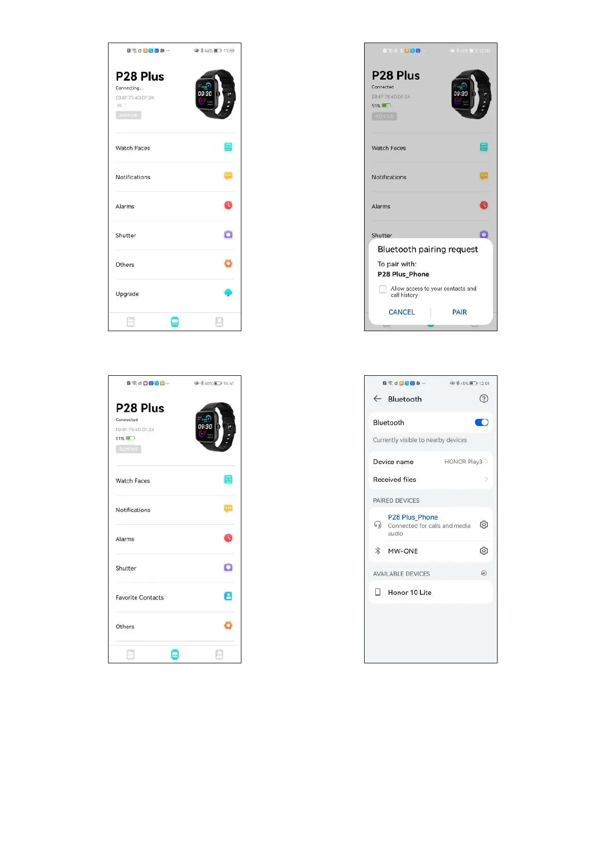 3.Tap the P28 Plus and connect it 4.Pair with P28Plus_Phone