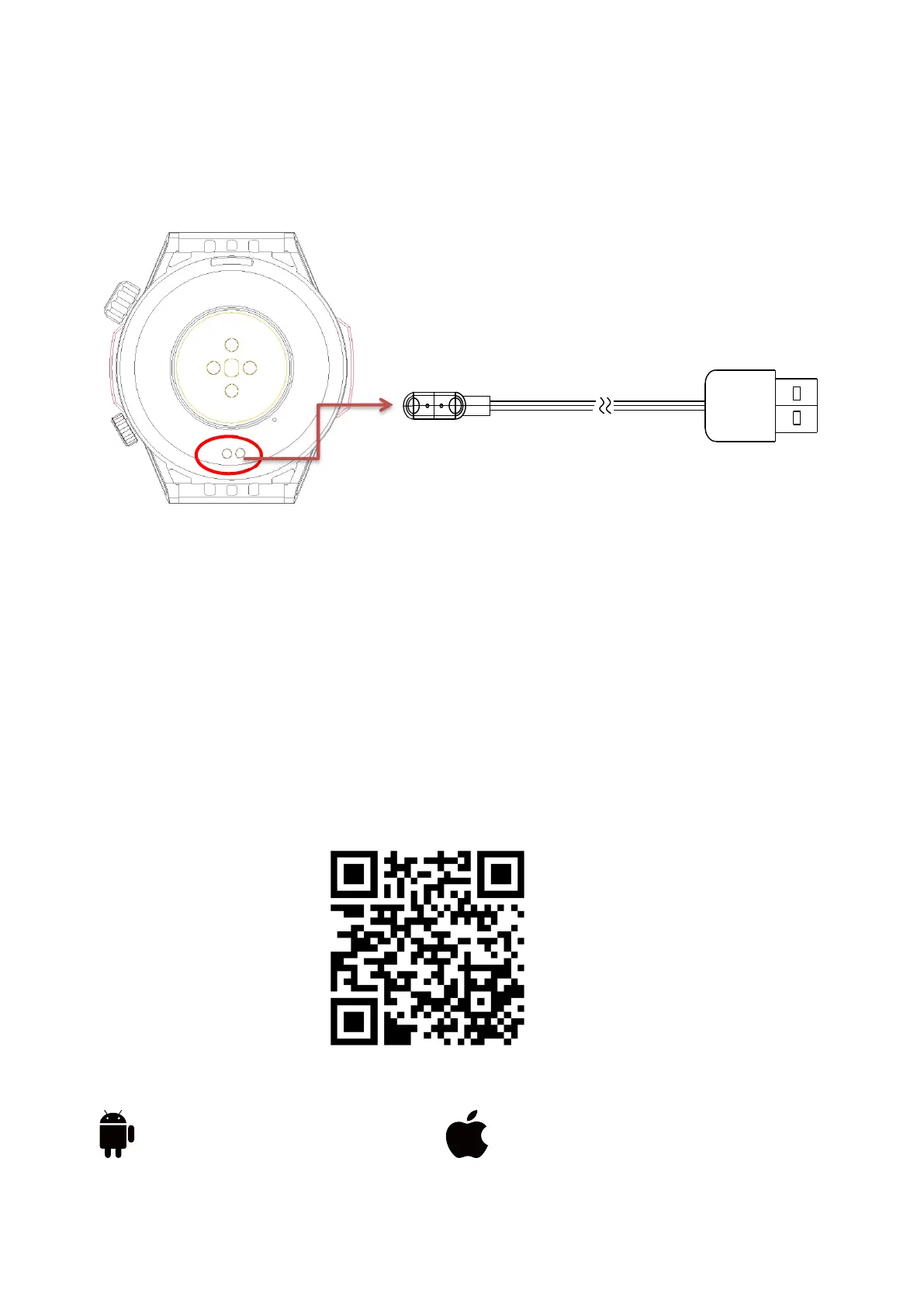 され、もう一端は時計の背面にある接点に接続されます。時計画面に充電表示が表