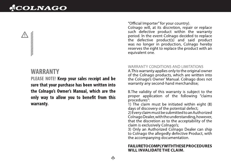 RETURN TO COLNAGO THE CERTIFICATE OF