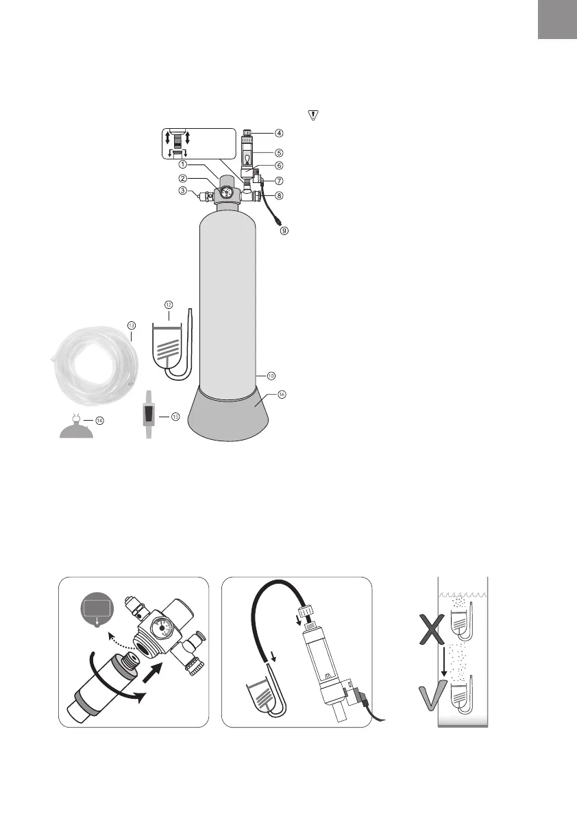 réglé avec précision avec le bouton de réglage et le compteur à bulles intégré. Le flux de gaz peut être arrêté la nuit avec