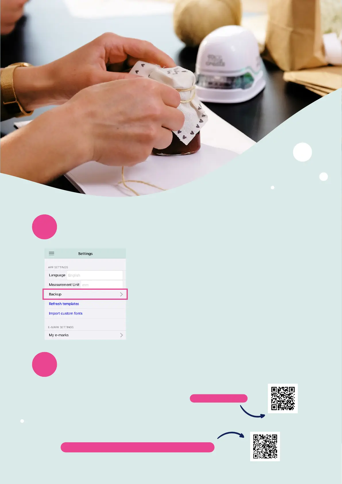 When creating a backup, all imprints, settings and other data are