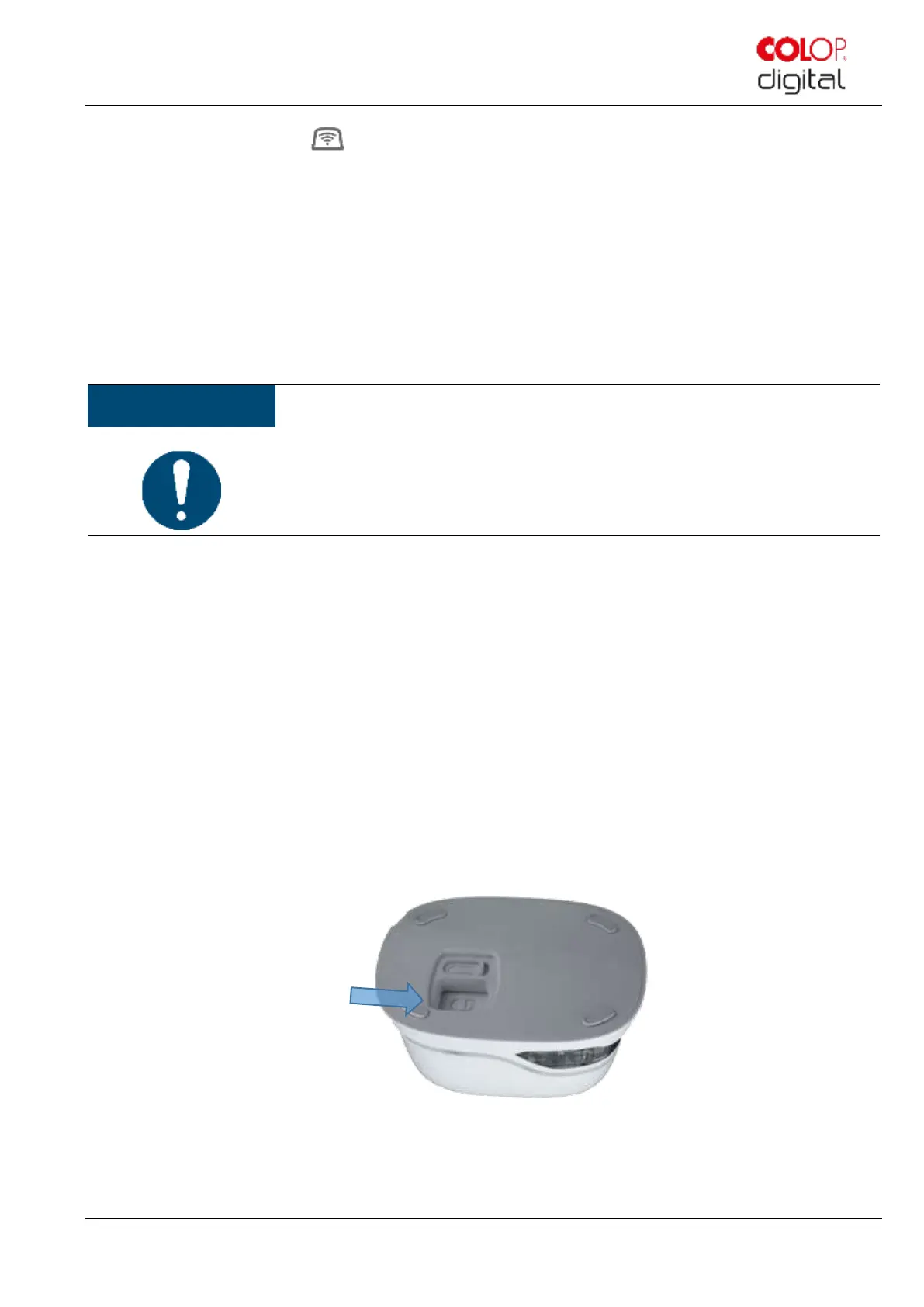 Switch on the e-mark create (in the docking station) by sliding the switch from OFF to ON. The Light Guide shows
