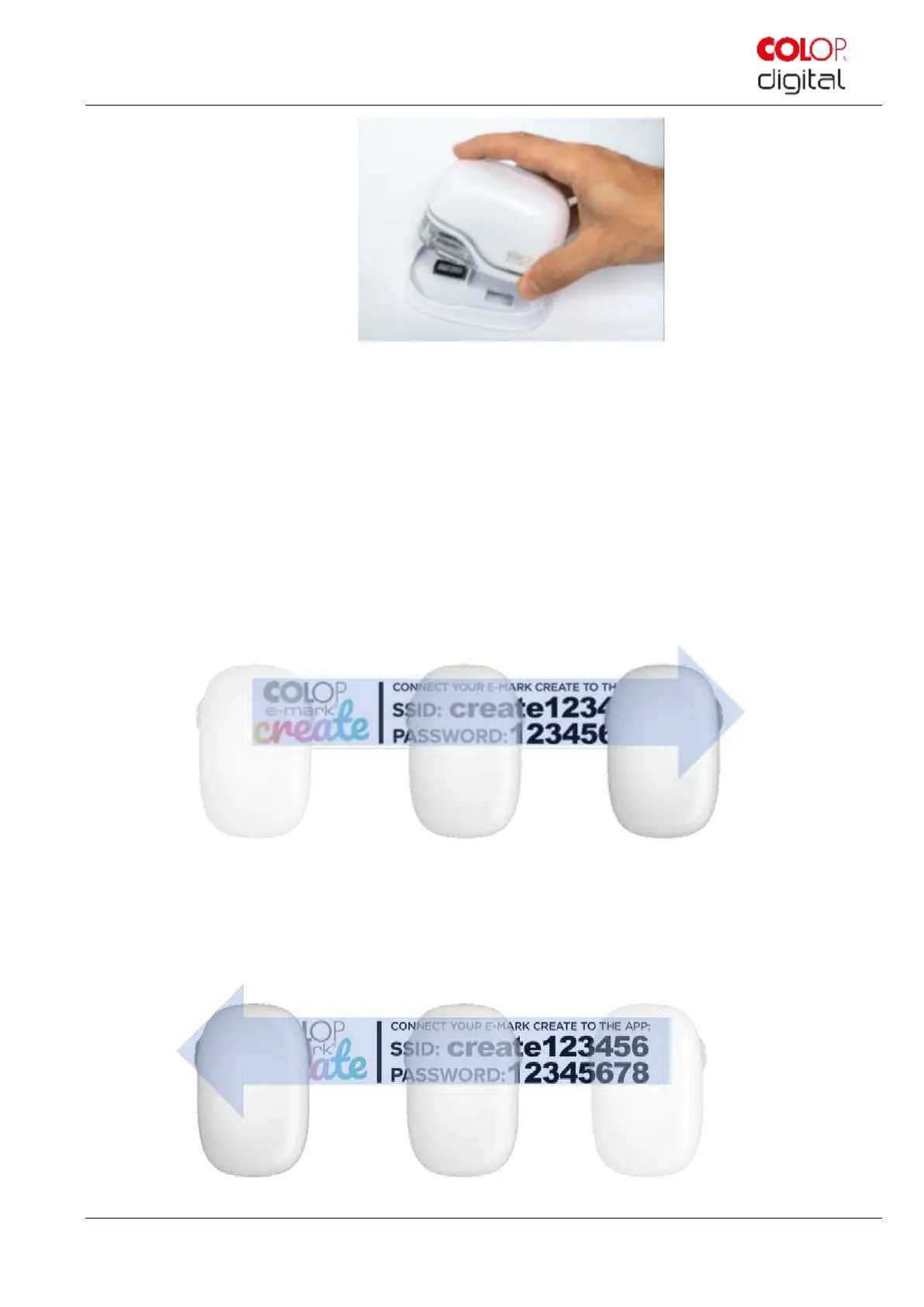 6. The e-mark create automatically detects the direction of movement (indicated by a white LED to the right or