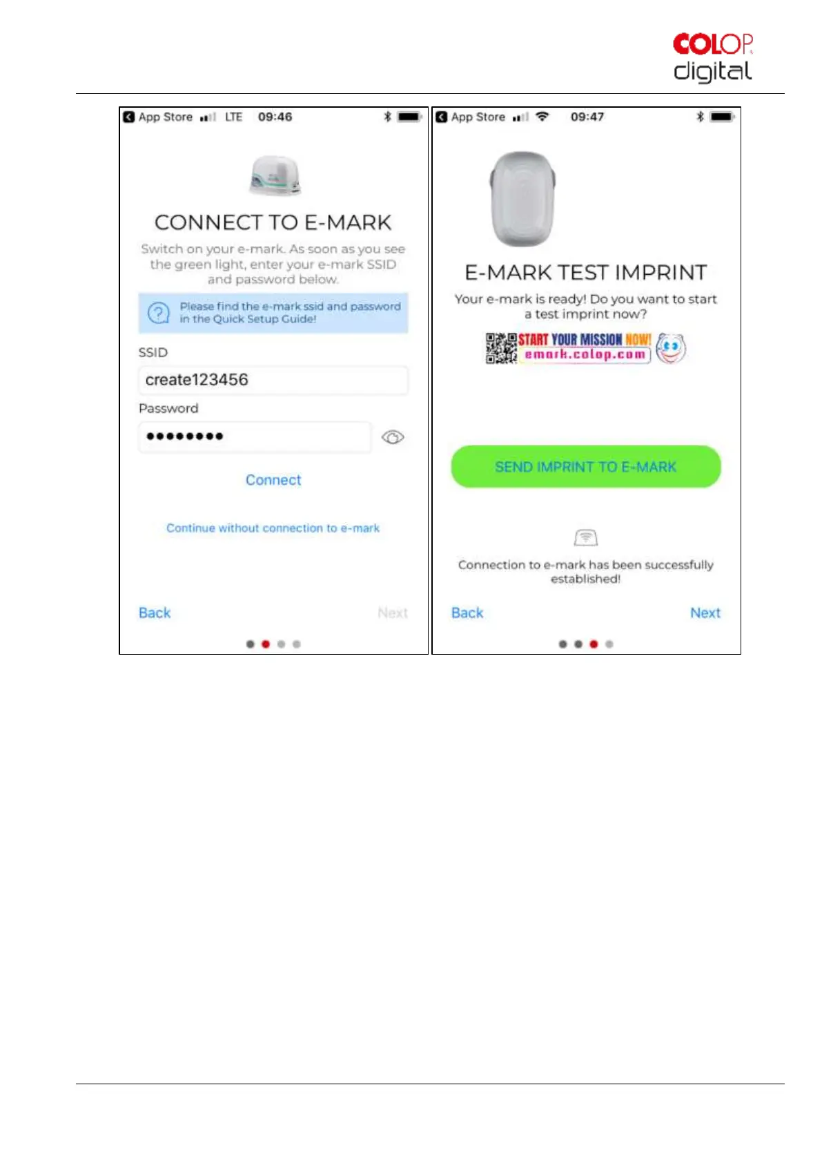 6. The e-mark create is connected to your device via WIFI. A test imprint can now be made.