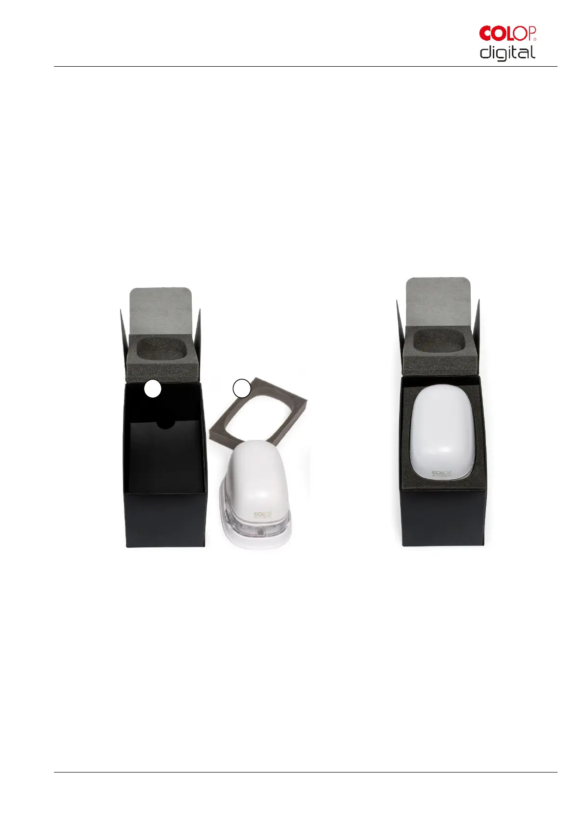 4. Return the e-mark to the original packaging (1) and secure it with the foam ring (2).