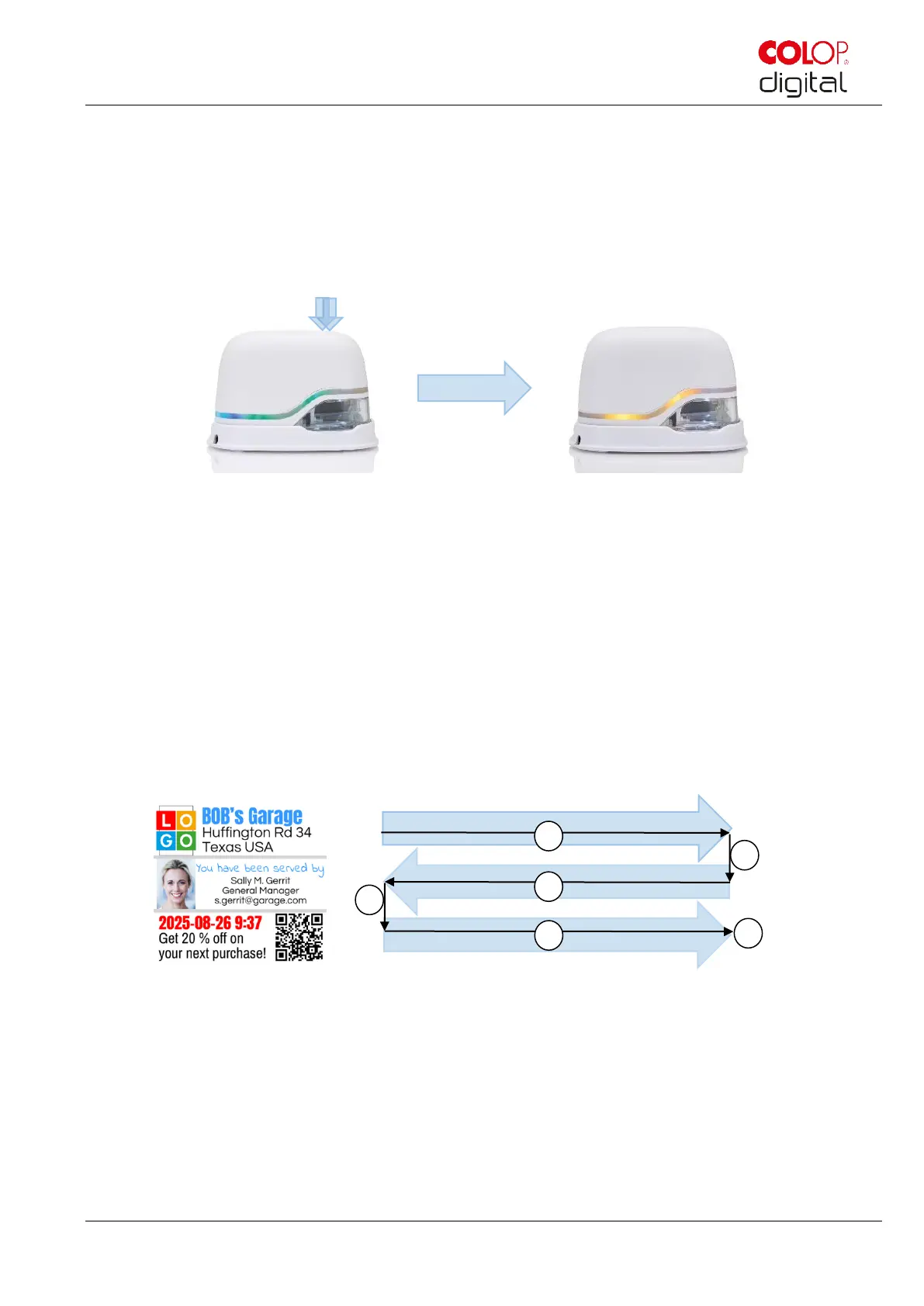 time and acoustic signal the imprint can be made. Be aware that the colors do not change if no imprints