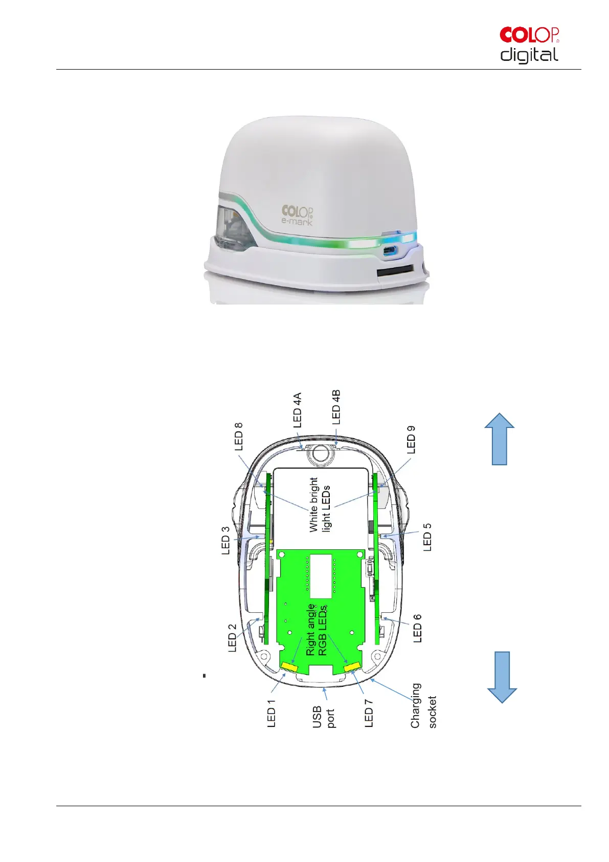 The color LEDs 1 to 7 (right angle RGB LEDs) on the Light Guide indicate the e-mark operating modes
