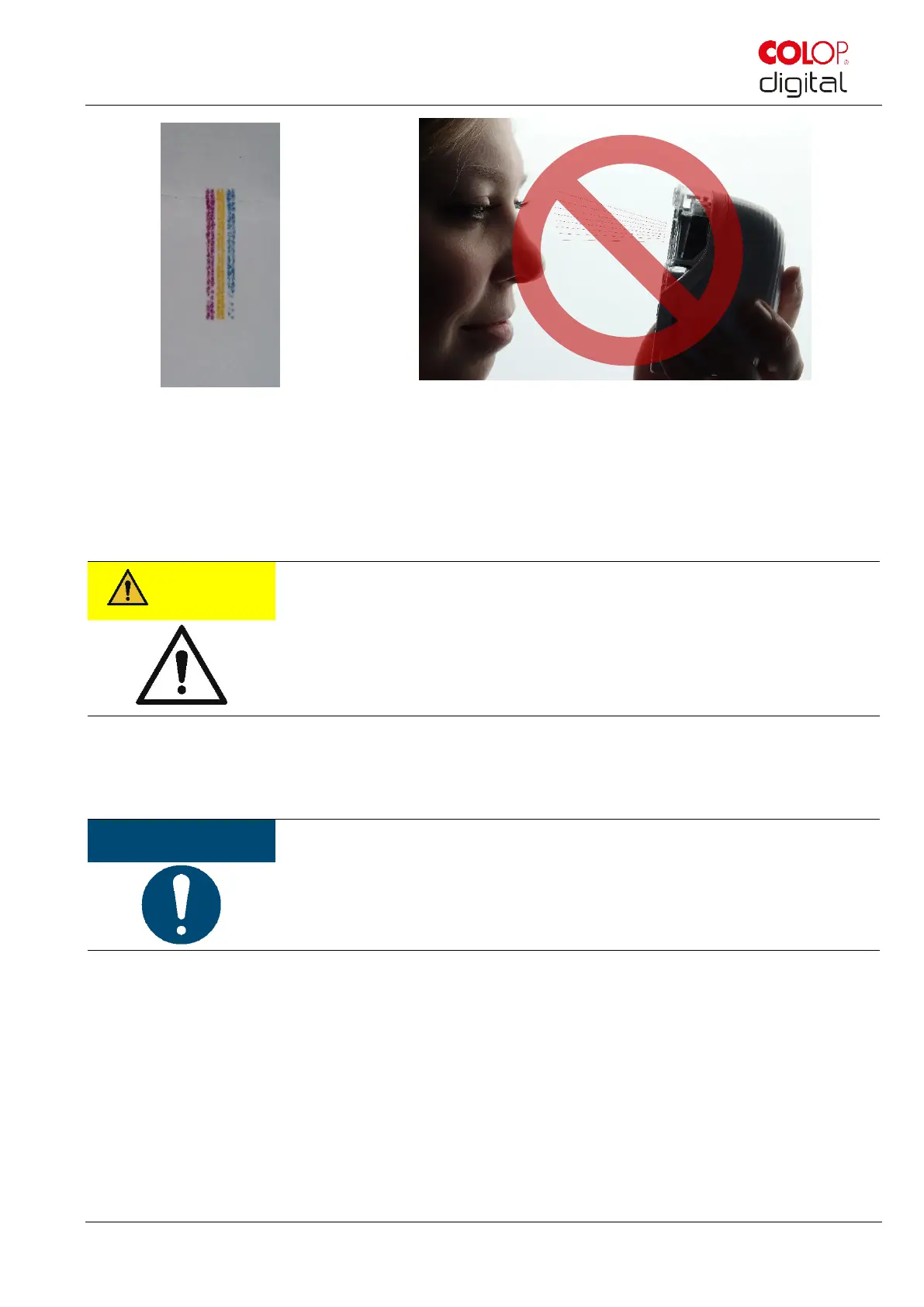 Do not direct the print head towards the eyes, face or skin. Do not open the ink