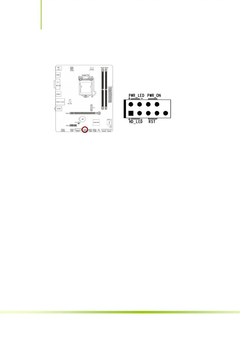 power LED cable to this connector. The system power LED lights up when