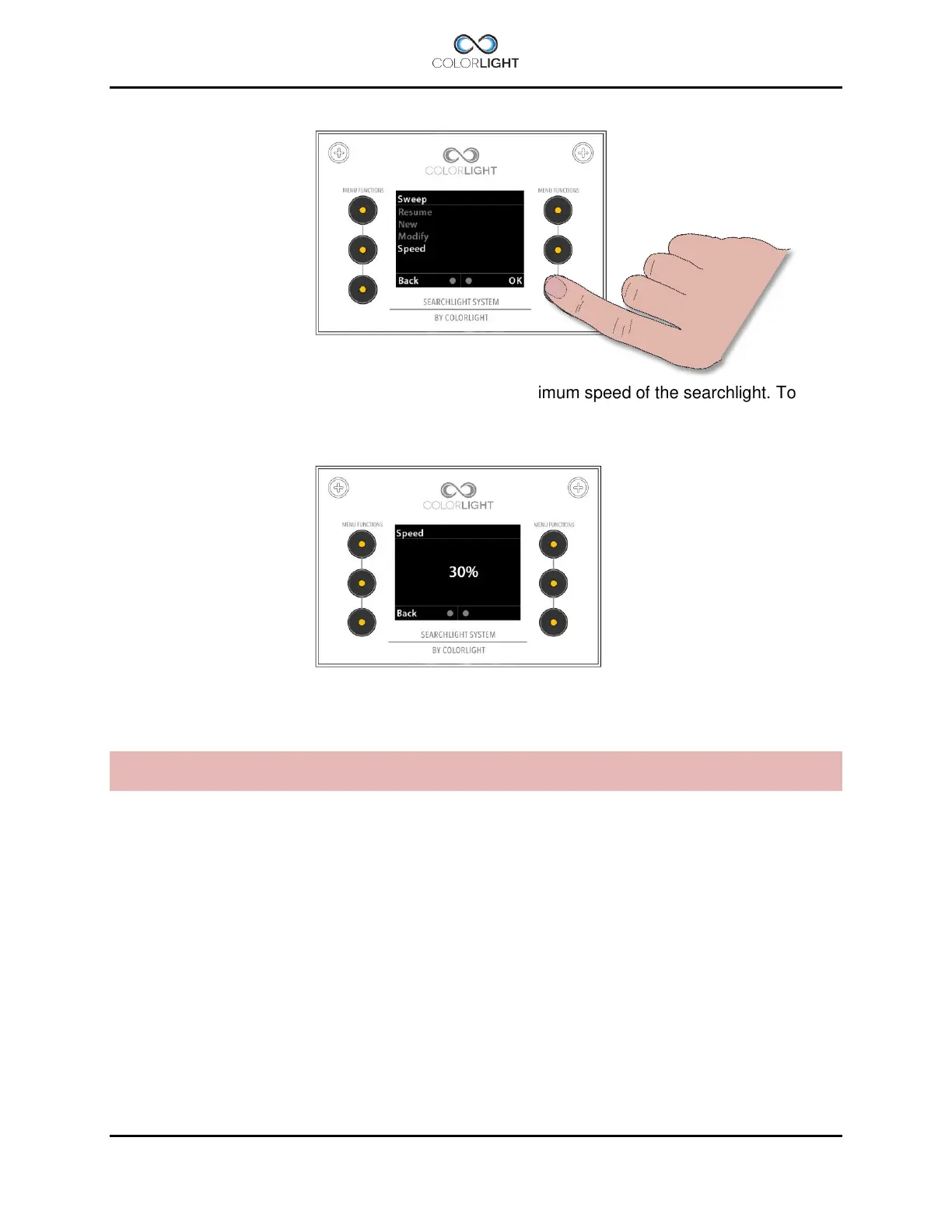 The default speed of the sweep is set to 50% of the maximum speed of the searchlight. To