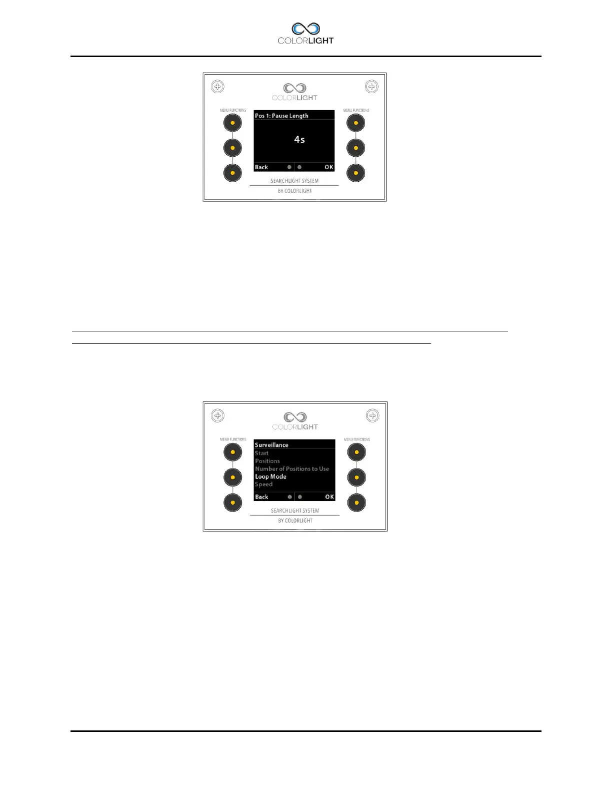 searchlight will rest at this position before starting to move to the next position. Pause length