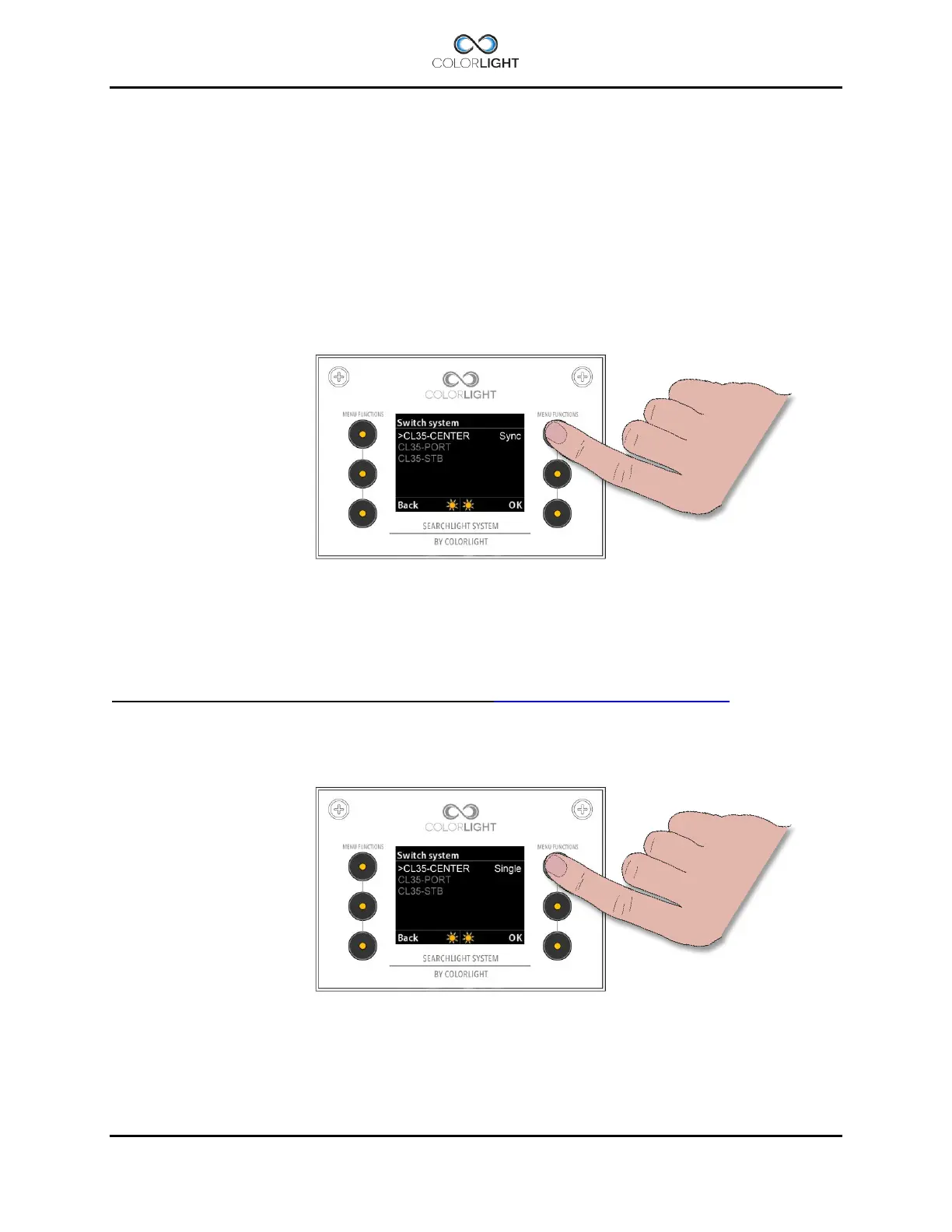 the “Switch” submenu, navigate to the master searchlight and press the “Single” button.