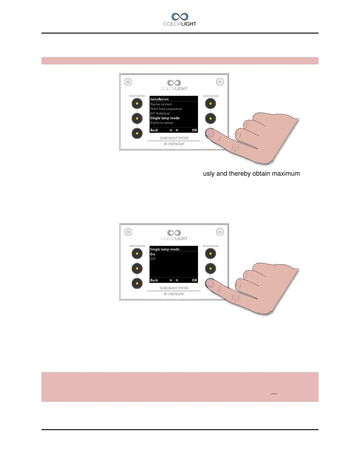 By selecting single lamp mode “On” and confirm by pressing “OK”, the left LED will turn on / off