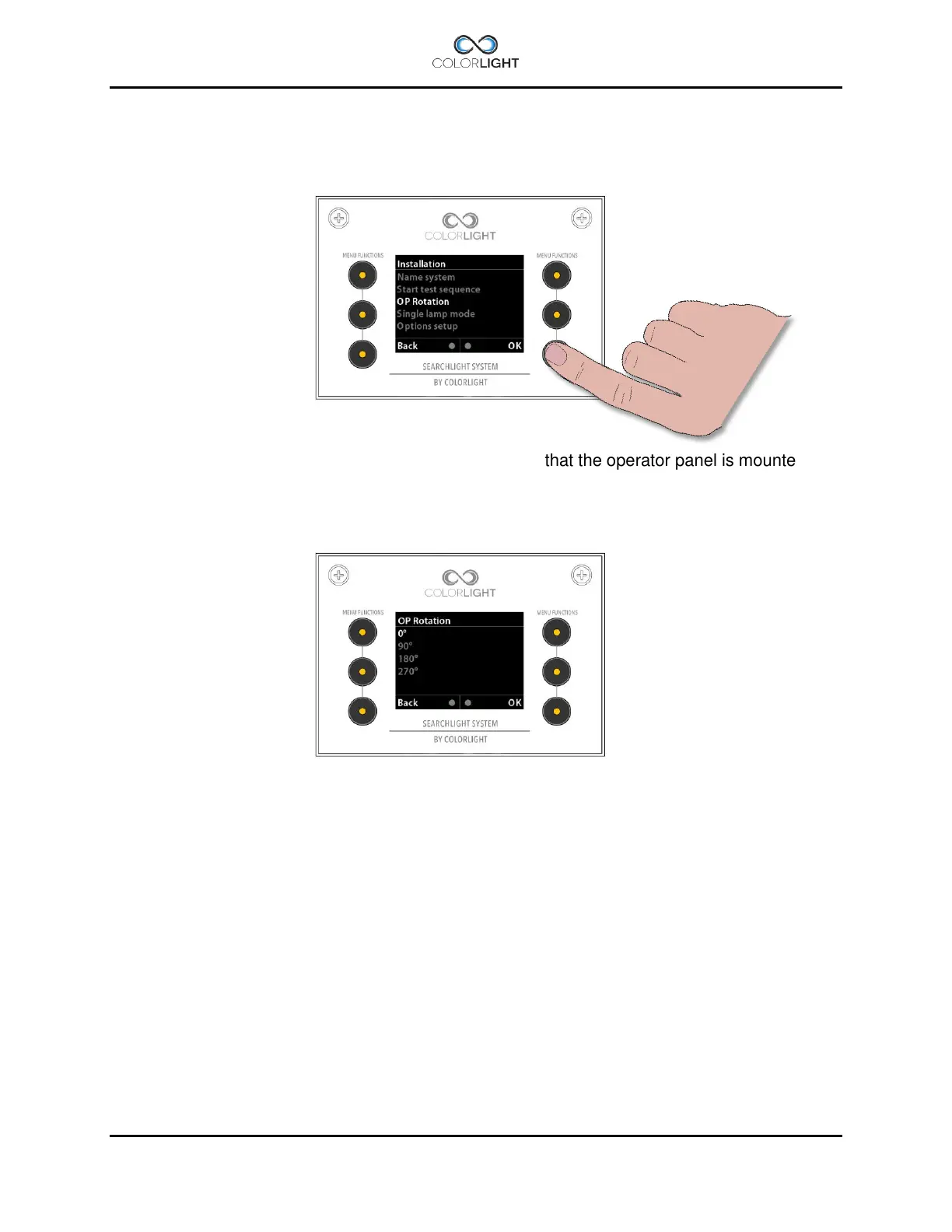 This menu is used if you have mounted an operator panel pointing in a different direction than
