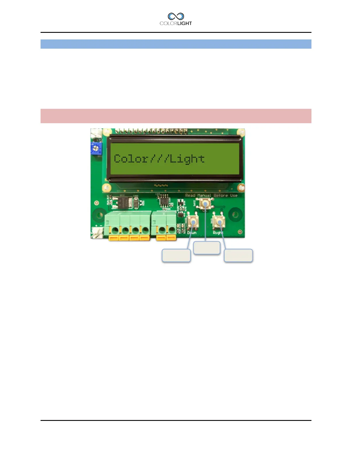 The user interacts with the menu system using the three buttons, the “Down” button, the “Right”