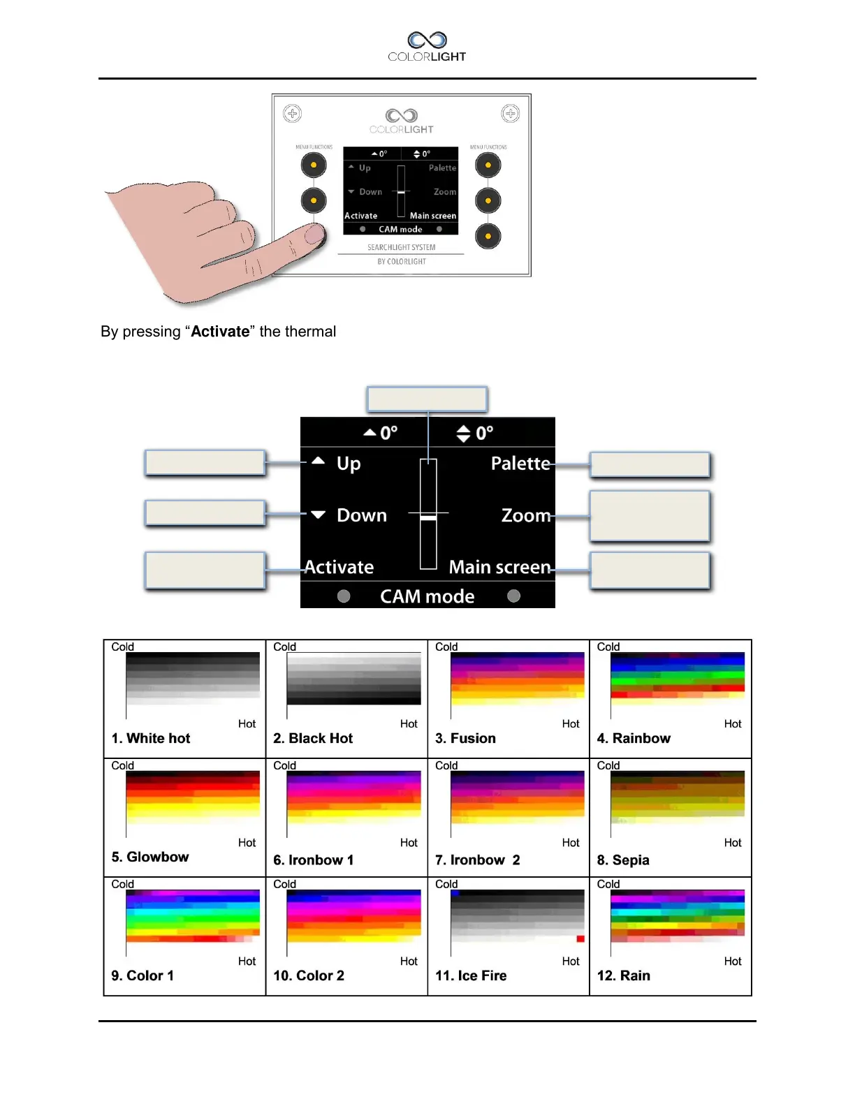 By pressing “Activate” the thermal camera is powered up and the video signal is sent to the