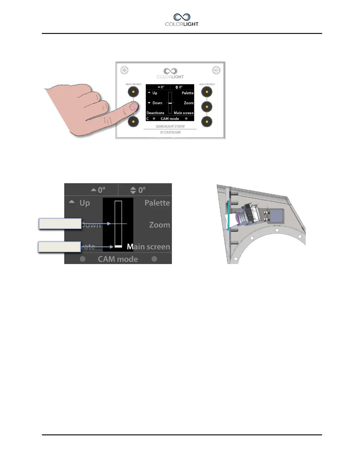 In “CAM mode”, press "Down”-button repeatedly to adjust the camera tilt angle downwards.